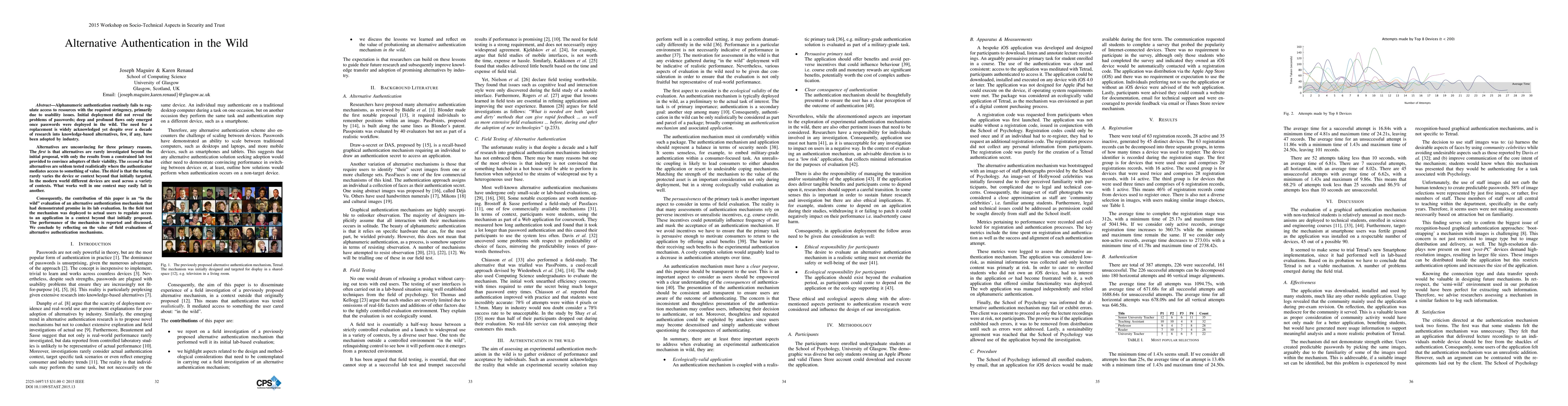 A research paper evaluates an alternative authentication mechanism in real-world settings, revealing its limitations and highlighting the importance of field tests to ensure its effectiveness in various contexts.