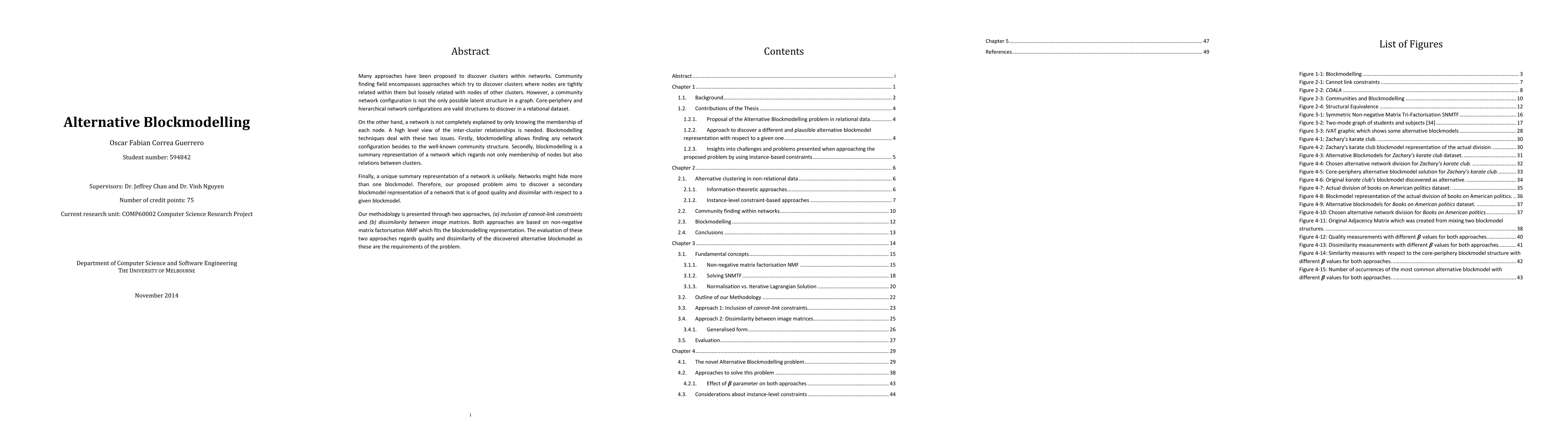A research paper proposes an approach to discover alternative blockmodelling representations of networks beyond community structures, focusing on quality and dissimilarity of the discovered models.