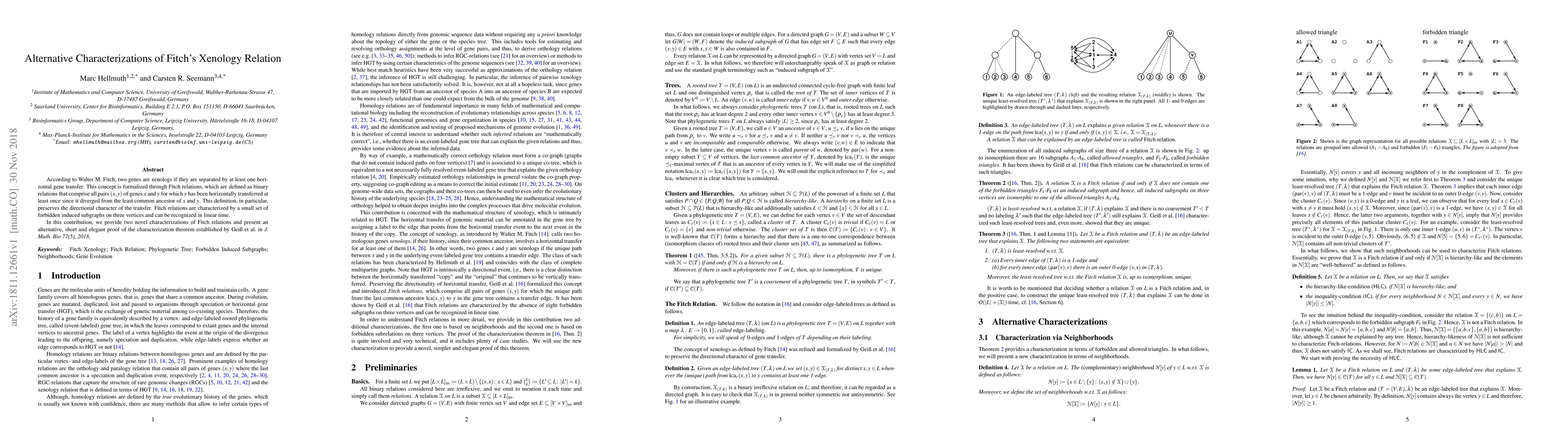 Researchers provide two novel characterizations of Fitch's xenology relation, offering an alternative proof to a 2018 theorem, allowing for more efficient recognition of horizontal gene transfers in genes.