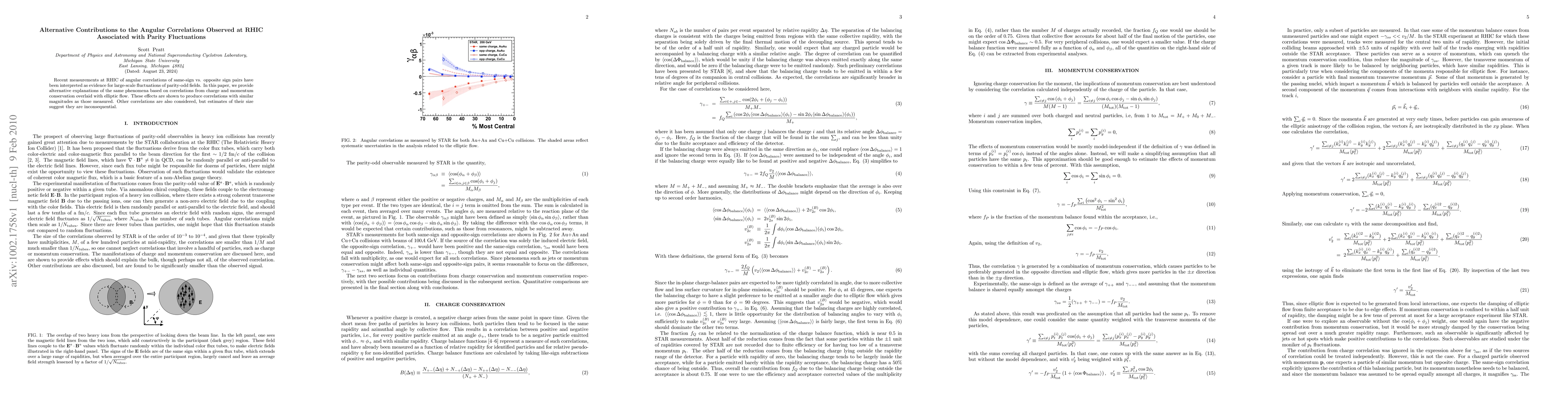This paper proposes alternative explanations for angular correlations observed at RHIC, attributing them to charge and momentum conservation effects and elliptic flow, rather than large-scale parity-odd field fluctuations. These alternative mechanisms are shown to generate similar correlation magnitudes as those previously interpreted as evidence for parity fluctuations.