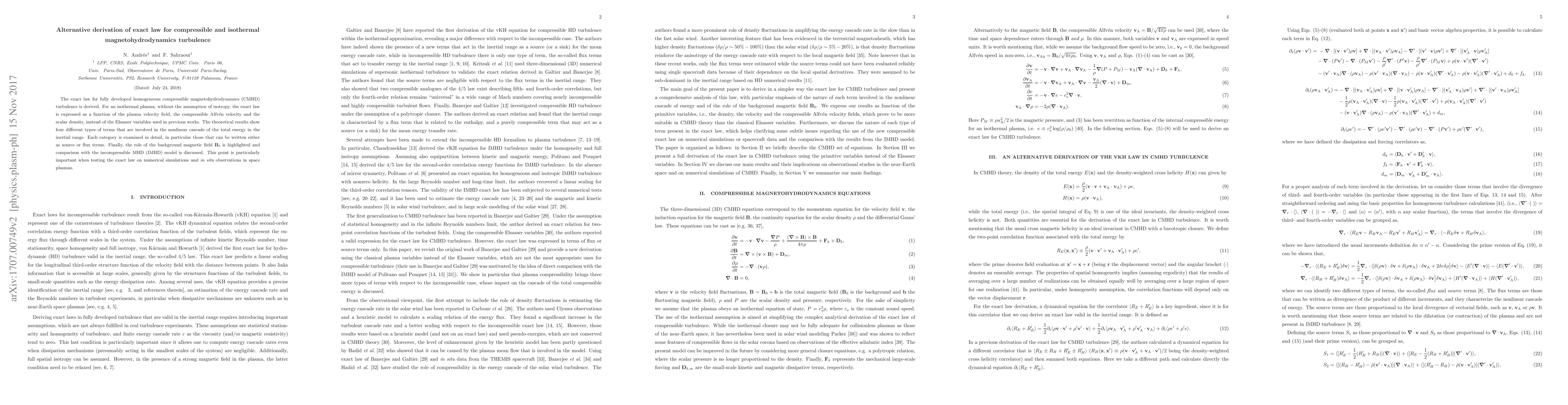 This paper derives an exact law for compressible and isothermal magnetohydrodynamics turbulence, expressing it in terms of plasma velocity, compressible Alfvén velocity, and scalar density, without assuming isotropy. It identifies four types of terms in the nonlinear energy cascade and discusses their roles, emphasizing the influence of the background magnetic field and comparing with incompressible MHD models.