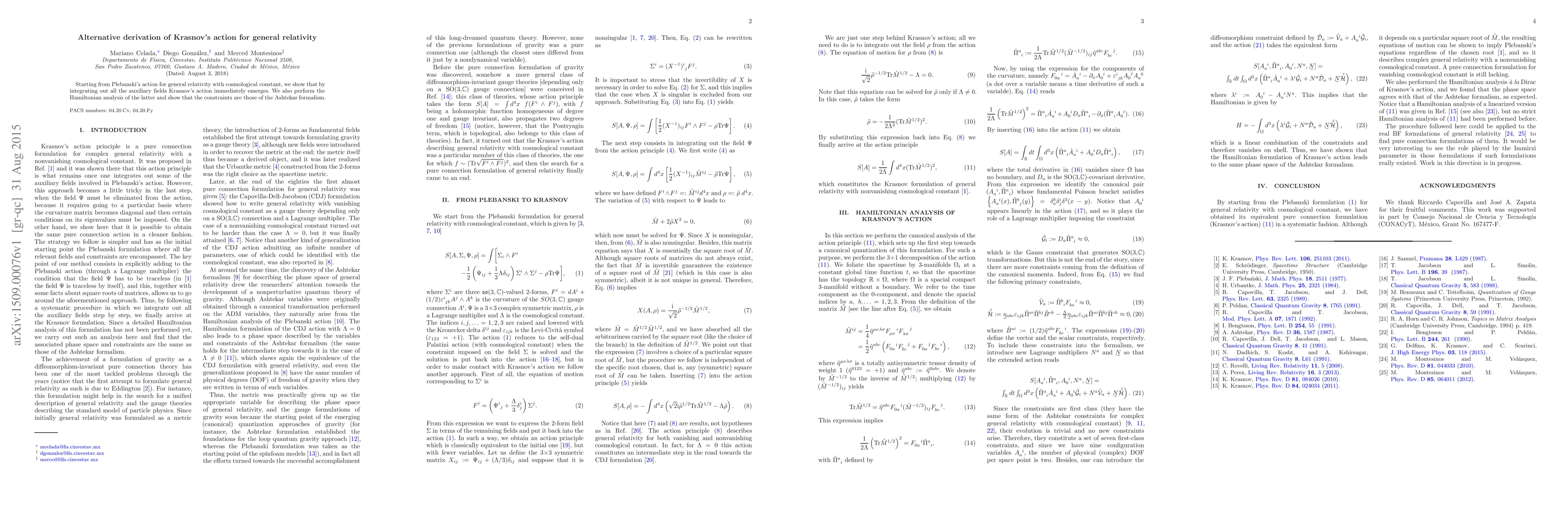 Researchers derived Krasnov's action for general relativity from Plebanski's action with a cosmological constant, showing that integrating out auxiliary fields leads to its emergence.