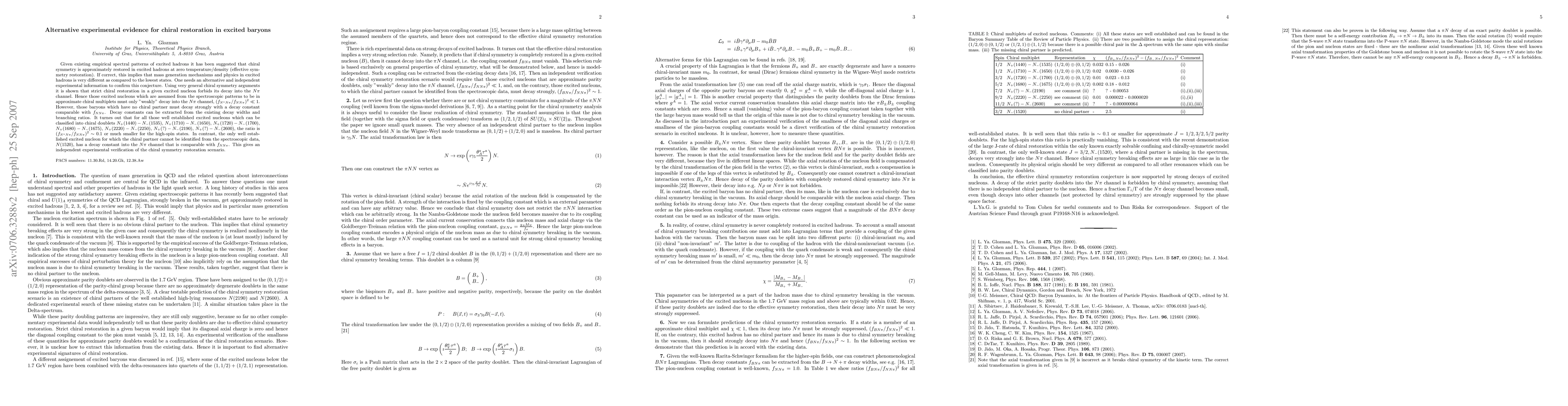 Given existing empirical spectral patterns of excited hadrons it has been suggested that chiral symmetry is approximately restored in excited hadrons at zero temperature/density (effective symmetry restoration). If correct, this implies that mass generation mechanisms and physics in excited hadrons is very different as compared to the lowest states. One needs an alternative and independent experimental information to confirm this conjecture. Using very general chiral symmetry arguments it is shown that strict chiral restoration in a given excited nucleon forbids its decay into the N \pi channel. Hence those excited nucleons which are assumed from the spectroscopic patterns to be in approximate chiral multiplets must only "weakly" decay into the N \pi channel, (f_{N^*N\pi}/f_{NN\pi})^2 << 1. However, those baryons which have no chiral partner must decay strongly with a decay constant comparable with f_{NN\pi}. Decay constants can be extracted from the existing decay widths and branching ratios. It turnes out that for all those well established excited nucleons which can be classified into chiral doublets N_+(1440) - N_-(1535), N_+(1710) - N_-(1650), N_+(1720) - N_-(1700), N_+(1680) - N_-(1675), N_+(2220) - N_-(2250), N_+(?) - N_-(2190), N_+(?) - N_-(2600), the ratio is (f_{N^*N\pi}/f_{NN\pi})^2 ~ 0.1 or much smaller for the high-spin states. In contrast, the only well established excited nucleon for which the chiral partner cannot be identified from the spectroscopic data, N(1520), has a decay constant into the N\pi channel that is comparable with f_{NN\pi}. This gives an independent experimental verification of the chiral symmetry restoration scenario.