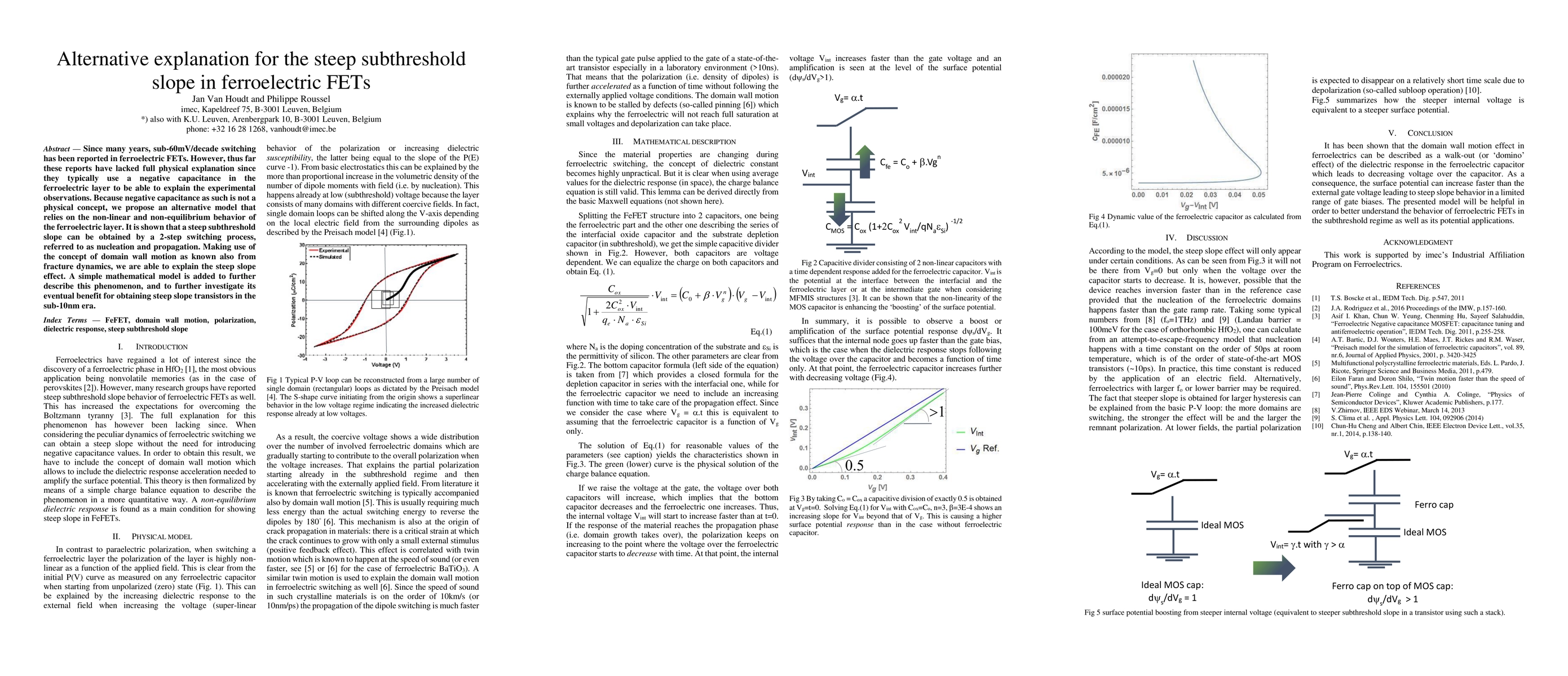 The paper presents a novel explanation for the steep subthreshold slope in ferroelectric FETs, based on domain wall motion and non-equilibrium behavior, offering a potential alternative to negative capacitance models.