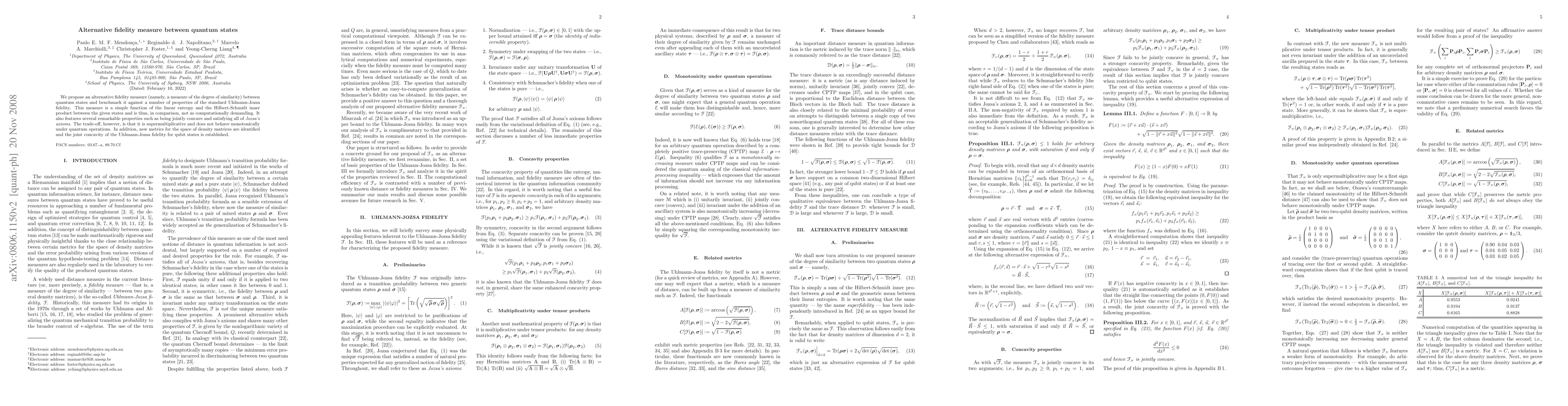 We propose an alternative fidelity measure (namely, a measure of the degree of similarity) between quantum states and benchmark it against a number of properties of the standard Uhlmann-Jozsa fidelity. This measure is a simple function of the linear entropy and the Hilbert-Schmidt inner product between the given states and is thus, in comparison, not as computationally demanding. It also features several remarkable properties such as being jointly concave and satisfying all of "Jozsa's axioms". The trade-off, however, is that it is supermultiplicative and does not behave monotonically under quantum operations. In addition, new metrics for the space of density matrices are identified and the joint concavity of the Uhlmann-Jozsa fidelity for qubit states is established.