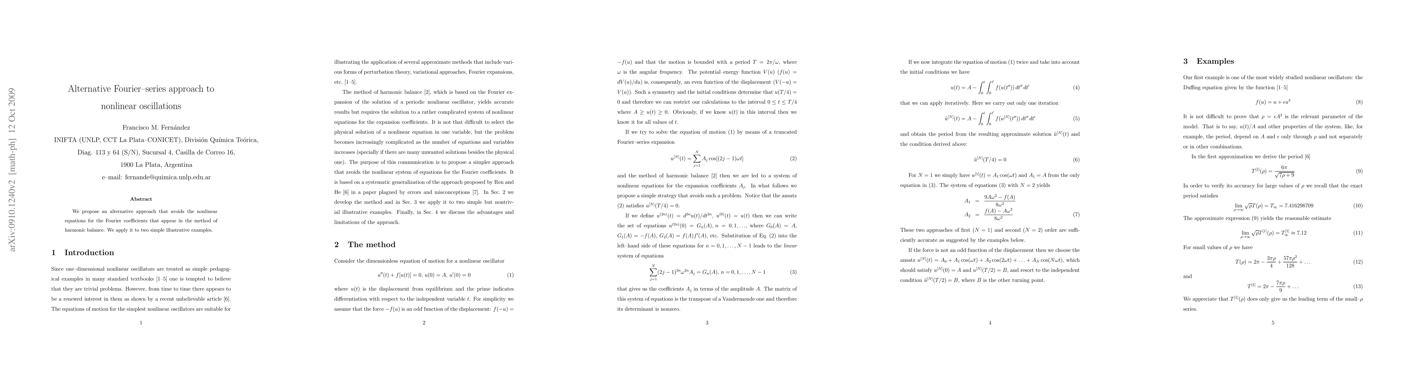 The research proposes an alternative approach to nonlinear oscillations using a Fourier-series method that avoids nonlinear equations for the Fourier coefficients.