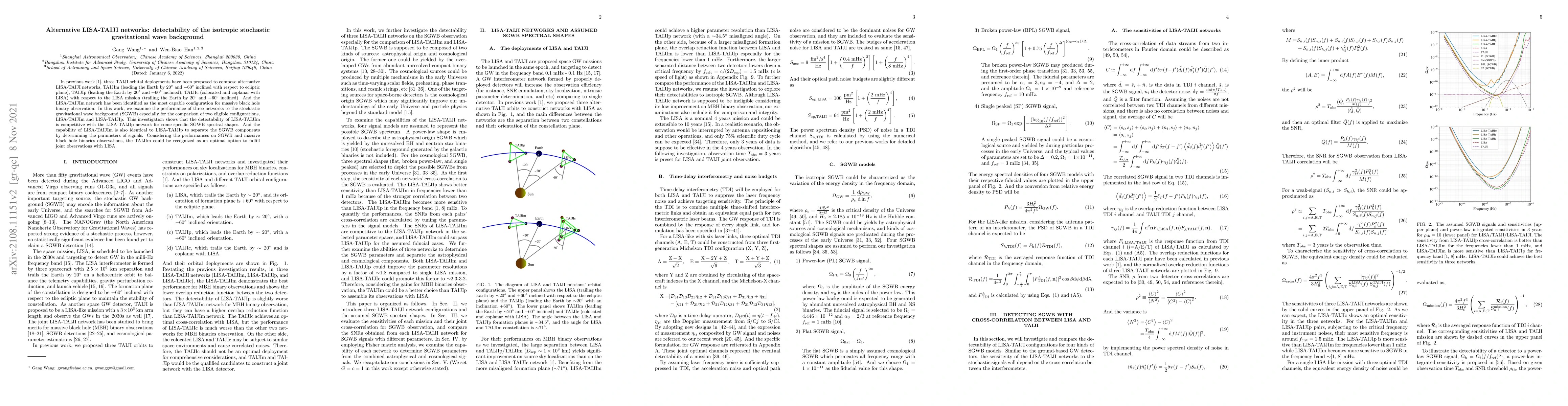 This paper evaluates the detectability of the stochastic gravitational wave background (SGWB) for three alternative LISA-TAIJI network configurations: TAIJIm, TAIJIp, and TAIJIc. It finds that LISA-TAIJIm is competitive with LISA-TAIJIp for detecting specific SGWB spectral shapes and both networks are equally capable of separating SGWB components.