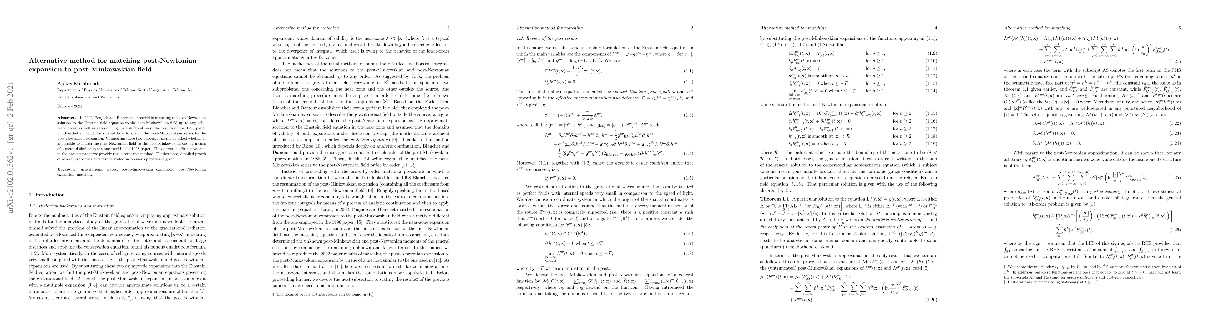 This paper presents an alternative method for matching the post-Newtonian expansion to the post-Minkowskian field, confirming the possibility of such a match using a technique similar to that used in a 1998 paper by Blanchet. It also provides detailed proofs for several properties and results previously discussed.