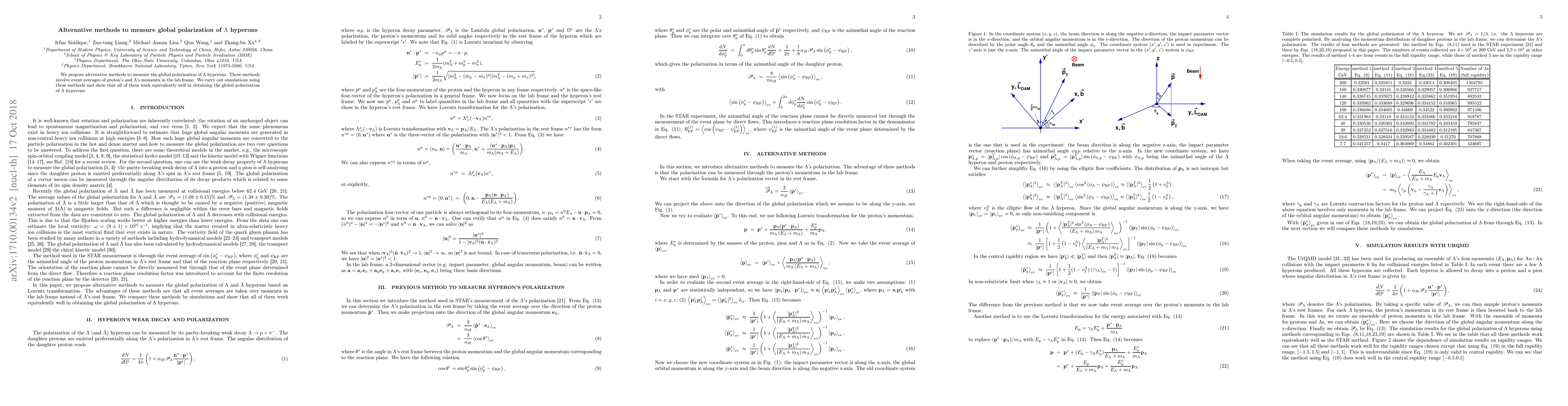We propose alternative methods to measure the global polarization of $\Lambda$ hyperons. These methods involve event averages of proton's and $\Lambda$'s momenta in the lab frame. We carry out simulations using these methods and show that all of them work equivalently well in obtaining the global polarization of $\Lambda$ hyperons.