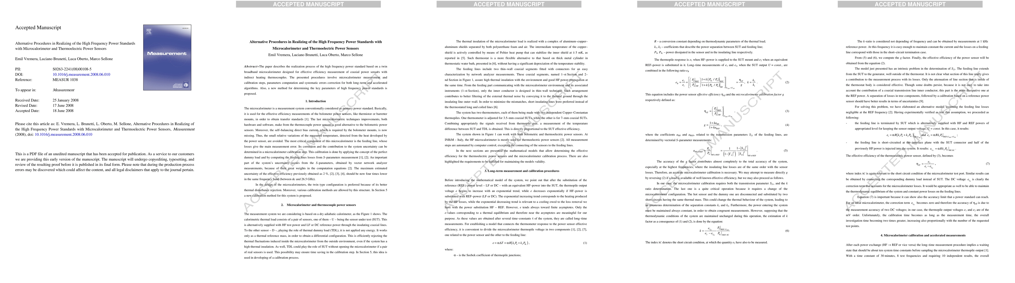 This paper details the development of high frequency power standards using a twin broadband microcalorimeter and thermoelectric power sensors, focusing on efficiency measurement and systematic error correction. It introduces a novel method for determining key parameters in these standards.