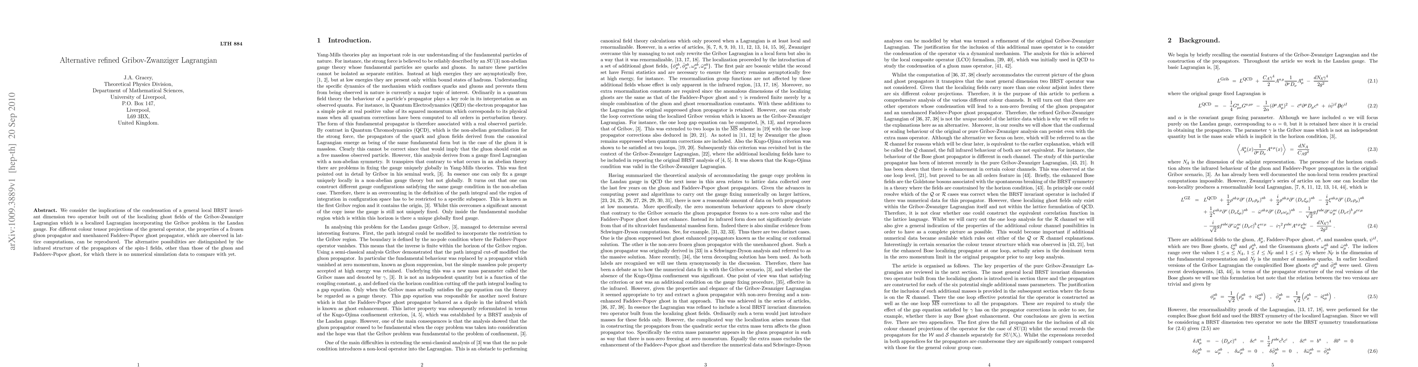 We consider the implications of the condensation of a general local BRST invariant dimension two operator built out of the localizing ghost fields of the Gribov-Zwanziger Lagrangian which is a localized Lagrangian incorporating the Gribov problem in the Landau gauge. For different colour tensor projections of the general operator, the properties of a frozen gluon propagator and unenhanced Faddeev-Popov ghost propagator, which are observed in lattice computations, can be reproduced. The alternative possibilities are distinguished by the infrared structure of the propagators of the spin-1 fields, other than those of the gluon and Faddeev-Popov ghost, for which there is no numerical simulation data to compare with yet.