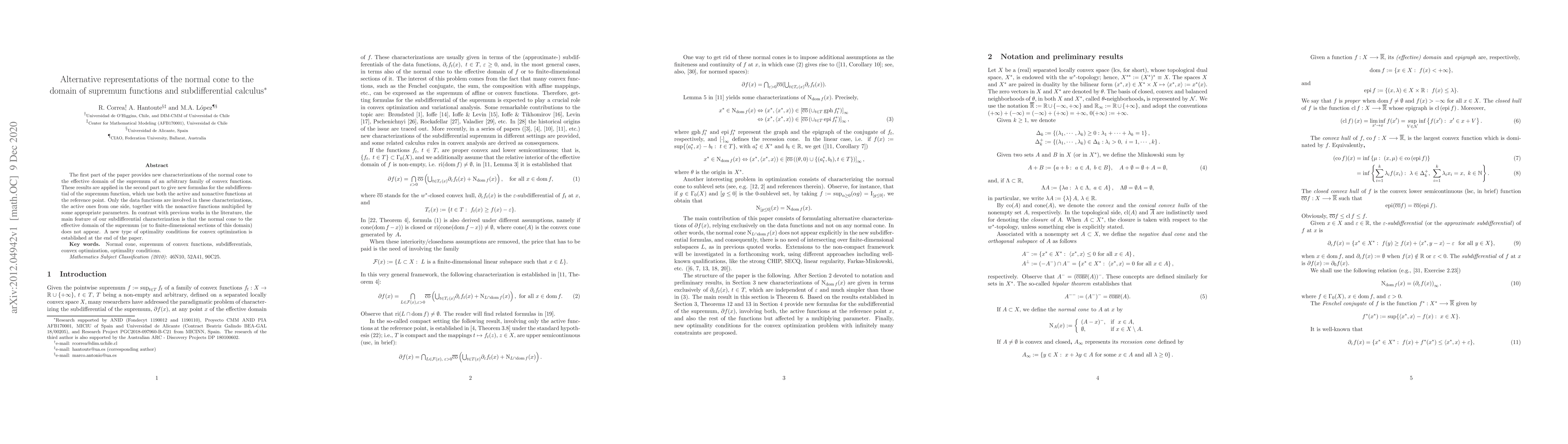 This paper introduces new characterizations of the normal cone for the effective domain of supremum functions and derives subdifferential formulas that incorporate both active and nonactive functions at a reference point, without relying on the normal cone. It also establishes new optimality conditions for convex optimization.