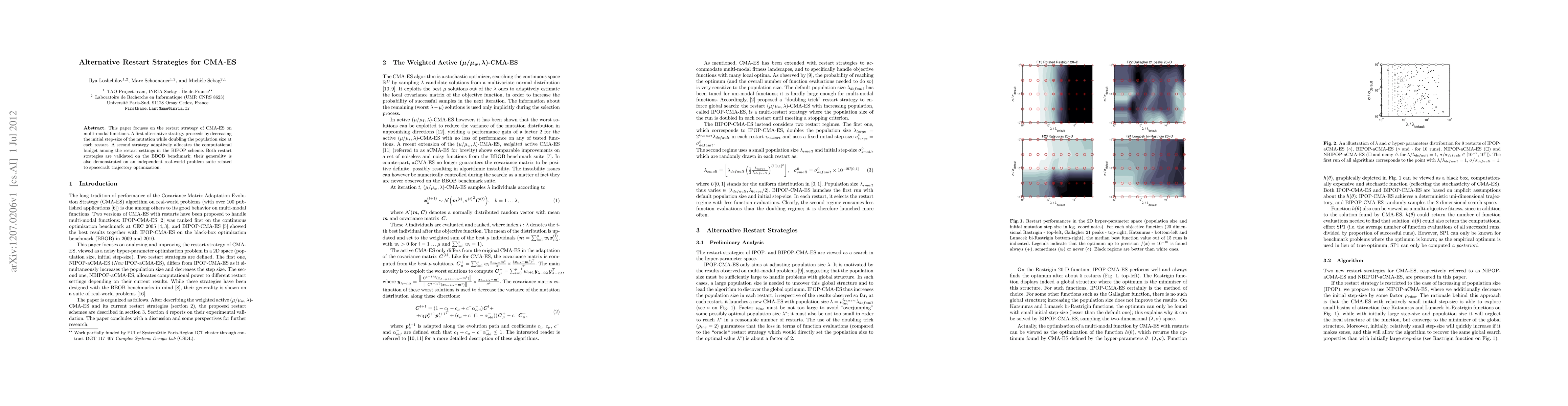 This paper proposes two alternative restart strategies for the Covariance Matrix Adaptation Evolution Strategy (CMA-ES) on multi-modal functions: one decreases the initial step-size while doubling the population size, and the other adaptively allocates computational budget in the BIPOP scheme. Both strategies are validated on the BBOB benchmark and shown to be effective on a real-world spacecraft trajectory optimization problem.