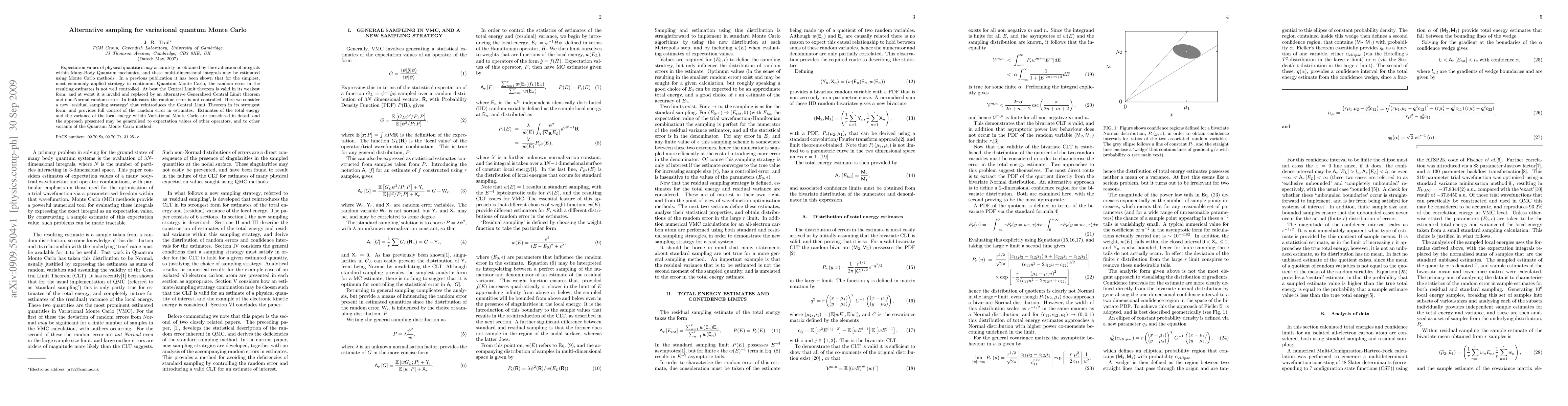 This paper proposes a new "residual sampling strategy" to improve the control of random error in variational quantum Monte Carlo methods, reinstating the Central Limit Theorem in its strongest form and ensuring accurate estimation of physical quantities. The method is demonstrated for total energy and local energy variance, with potential for broader application to other operators and quantum Monte Carlo variants.