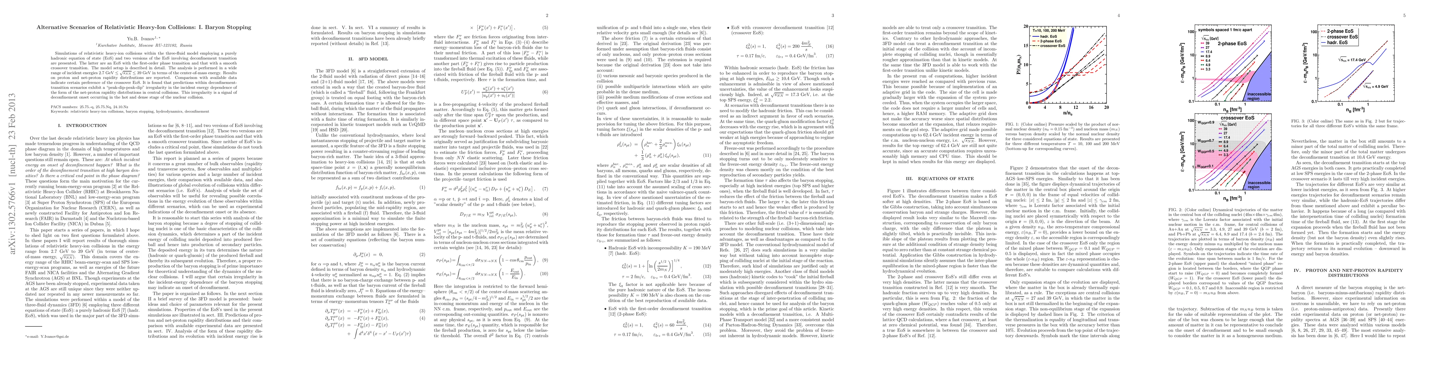 Researchers used simulations to study relativistic heavy-ion collisions, finding that a crossover equation of state predicts deconfinement onset in the hot stage of nuclear collisions, leading to an irregularity in proton rapidity distributions.