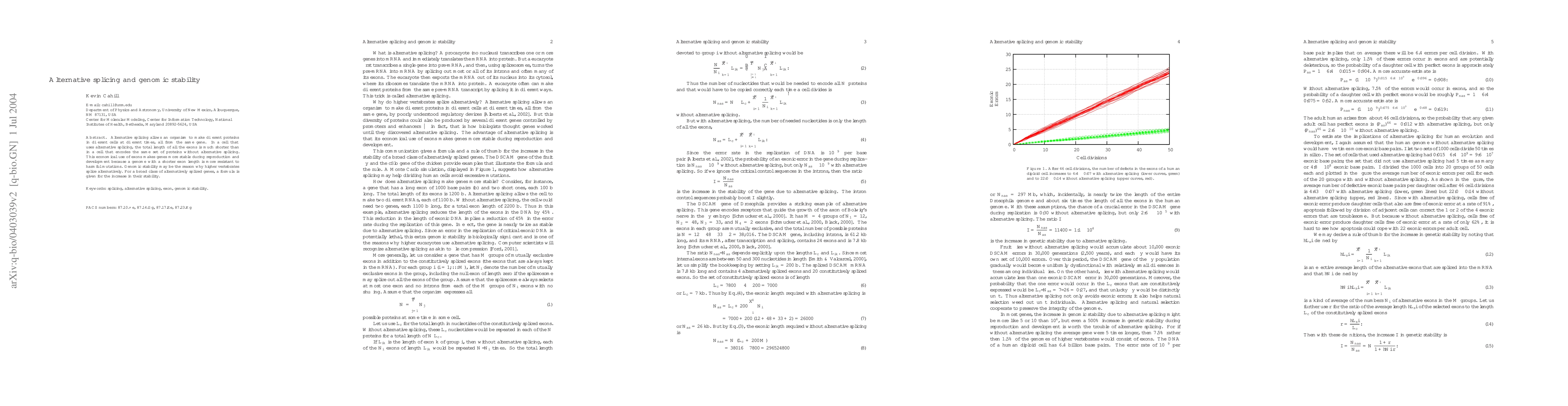 Summary: Alternative splicing enhances genomic stability by reducing exon length, thereby making genomes more resistant to mutations. This stability is crucial for reproduction and development, suggesting that higher vertebrates utilize alternative splicing to maintain genomic integrity.