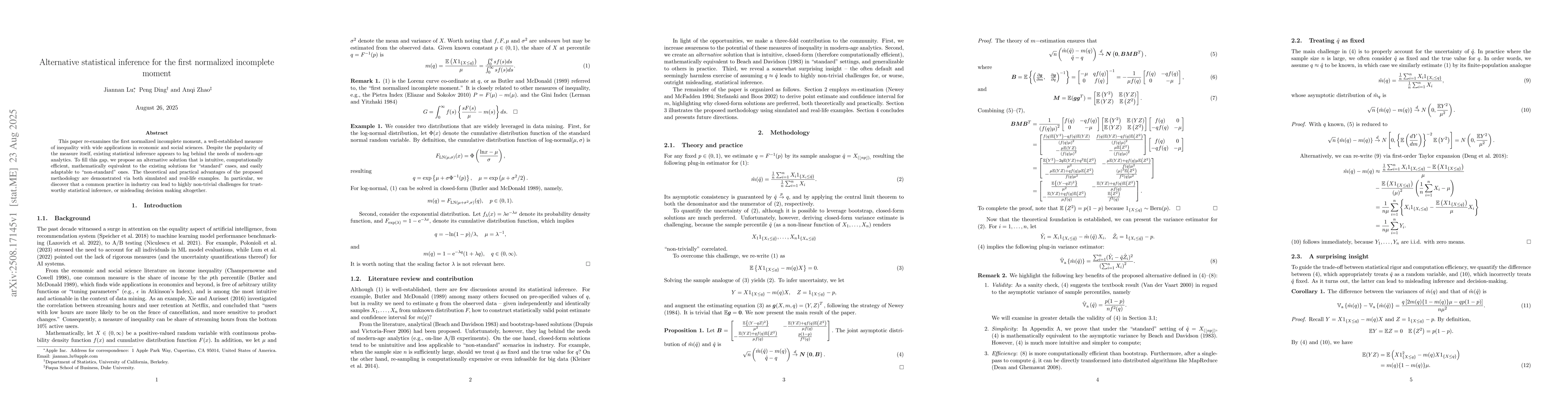 This paper re-examines the first normalized incomplete moment, a well-established measure of inequality with wide applications in economic and social sciences. Despite the popularity of the measure itself, existing statistical inference appears to lag behind the needs of modern-age analytics. To fill this gap, we propose an alternative solution that is intuitive, computationally efficient, mathematically equivalent to the existing solutions for "standard" cases, and easily adaptable to "non-standard" ones. The theoretical and practical advantages of the proposed methodology are demonstrated via both simulated and real-life examples. In particular, we discover that a common practice in industry can lead to highly non-trivial challenges for trustworthy statistical inference, or misleading decision making altogether.