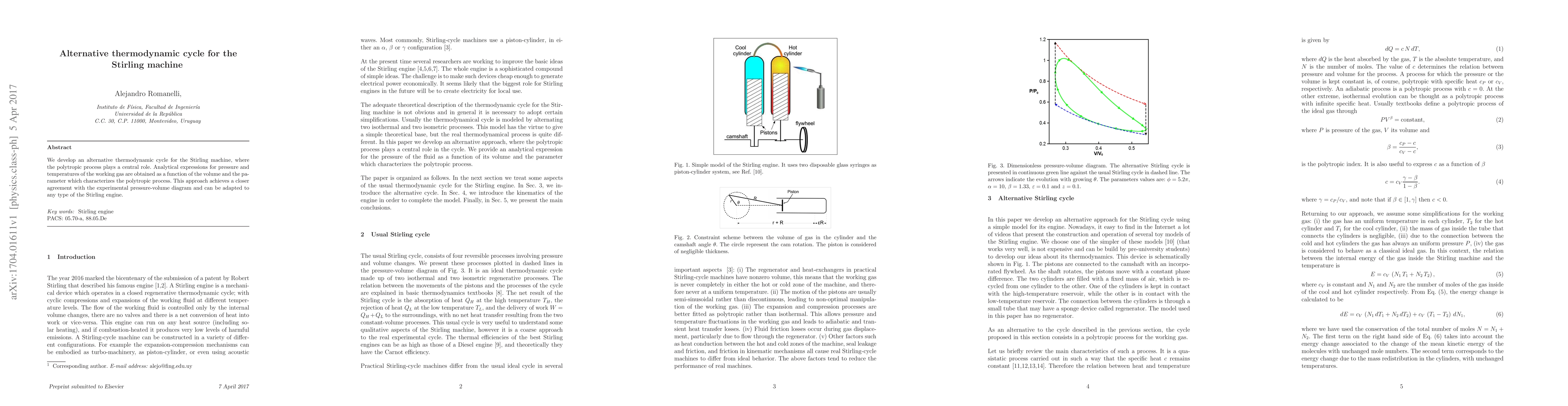 This paper proposes an alternative thermodynamic cycle for Stirling machines, utilizing a polytropic process to derive analytical expressions for pressure and temperature. This method aligns more closely with experimental data and is adaptable to various Stirling engine types.