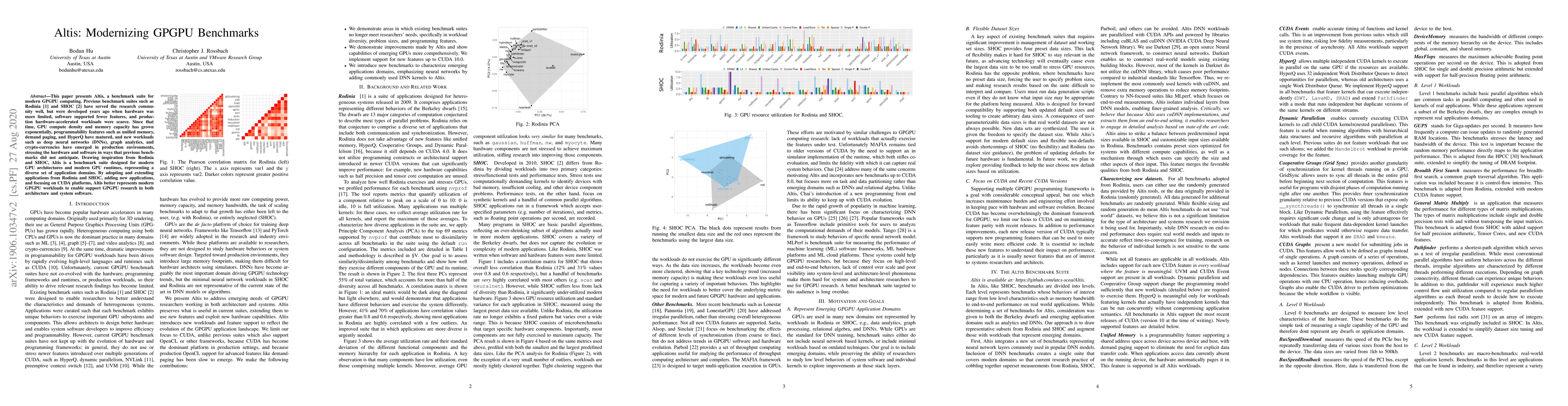 Altis is a new benchmark suite for modern GPGPU computing, designed to reflect contemporary GPU architectures and runtimes. It extends and updates previous benchmarks to better represent current workloads, including deep neural networks, graph analytics, and cryptocurrencies.