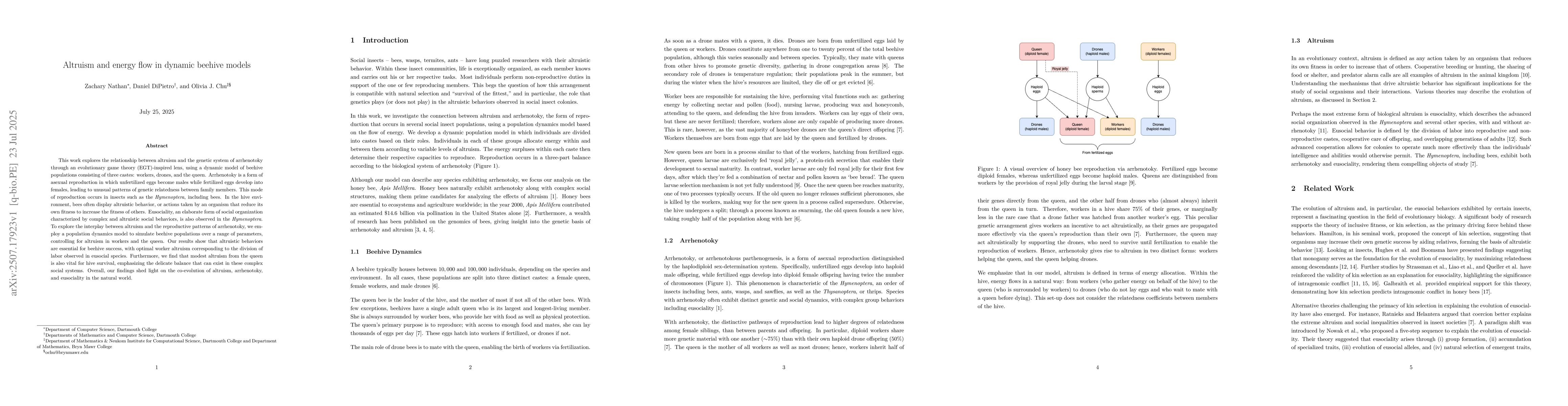This work explores the relationship between altruism and the genetic system of arrhenotoky through an evolutionary game theory (EGT)-inspired lens, using a dynamic model of beehive populations consisting of three castes: workers, drones, and the queen. Arrhenotoky is a form of asexual reproduction in which unfertilized eggs become males while fertilized eggs develop into females, leading to unusual patterns of genetic relatedness between family members. This mode of reproduction occurs in insects such as the Hymenoptera, including bees. In the hive environment, bees often display altruistic behavior, or actions taken by an organism that reduce its own fitness to increase the fitness of others. Eusociality, an elaborate form of social organization characterized by complex and altruistic social behaviors, is also observed in the Hymenoptera. To explore the interplay between altruism and the reproductive patterns of arrhenotoky, we employ a population dynamics model to simulate beehive populations over a range of parameters, controlling for altruism in workers and the queen. Our results show that altruistic behaviors are essential for beehive success, with optimal worker altruism corresponding to the division of labor observed in eusocial species. Furthermore, we find that modest altruism from the queen is also vital for hive survival, emphasizing the delicate balance that can exist in these complex social systems. Overall, our findings shed light on the co-evolution of altruism, arrhenotoky, and eusociality in the natural world.