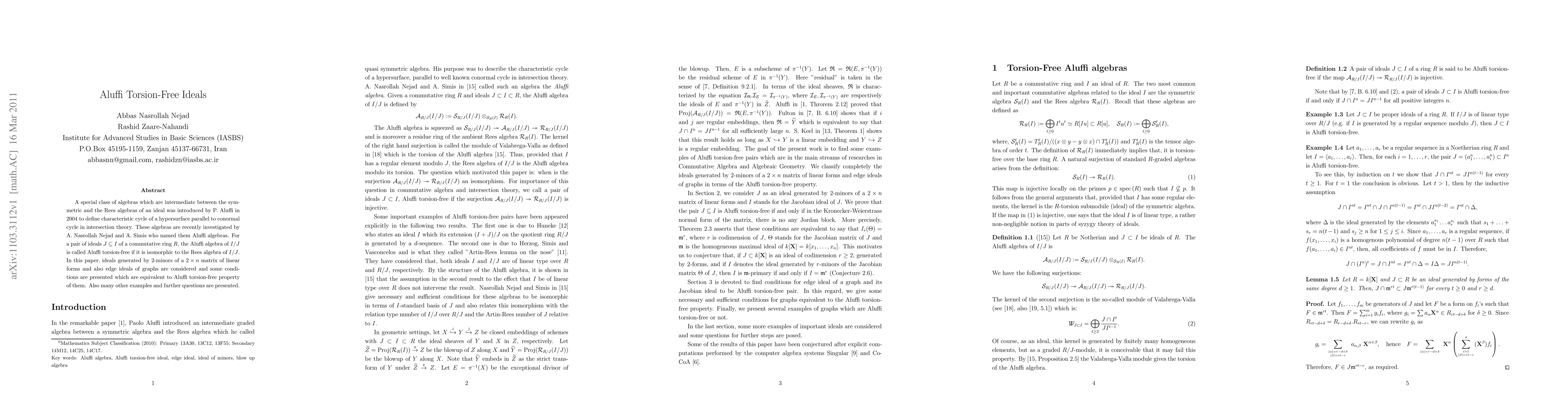 This paper investigates Aluffi torsion-free ideals, which are a type of algebra used in intersection theory, focusing on specific types like those generated by 2-minors of matrices and edge ideals of graphs, and presents conditions for the Aluffi torsion-free property.