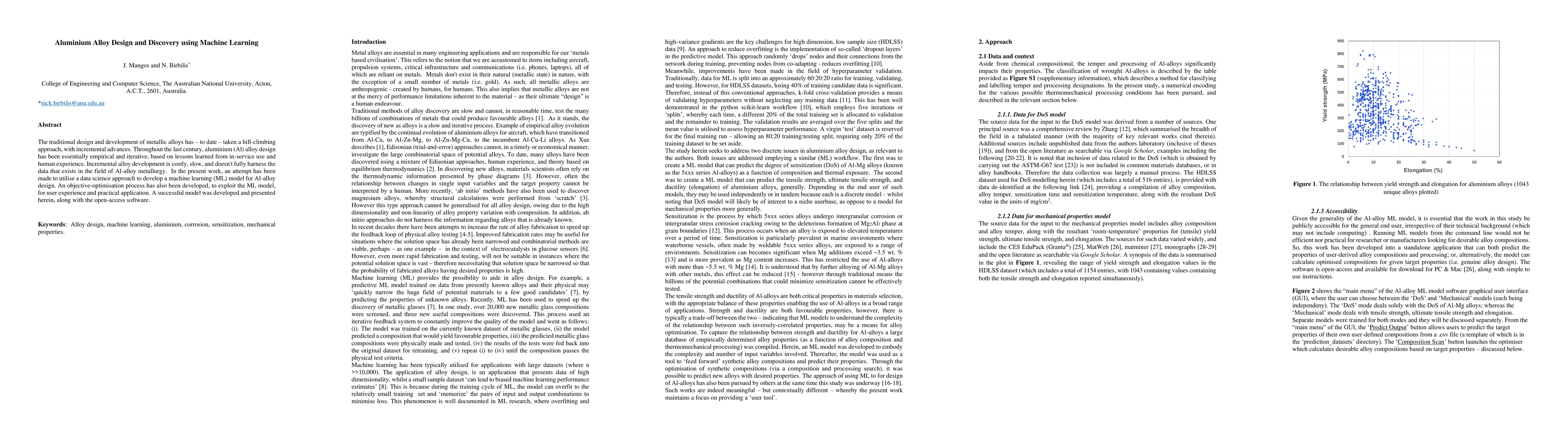 The paper presents one of the first user-interactive ML models for Al-alloy design, capable of predicting multiple outputs, including tensile yield strength, ultimate tensile strength, and elongation.