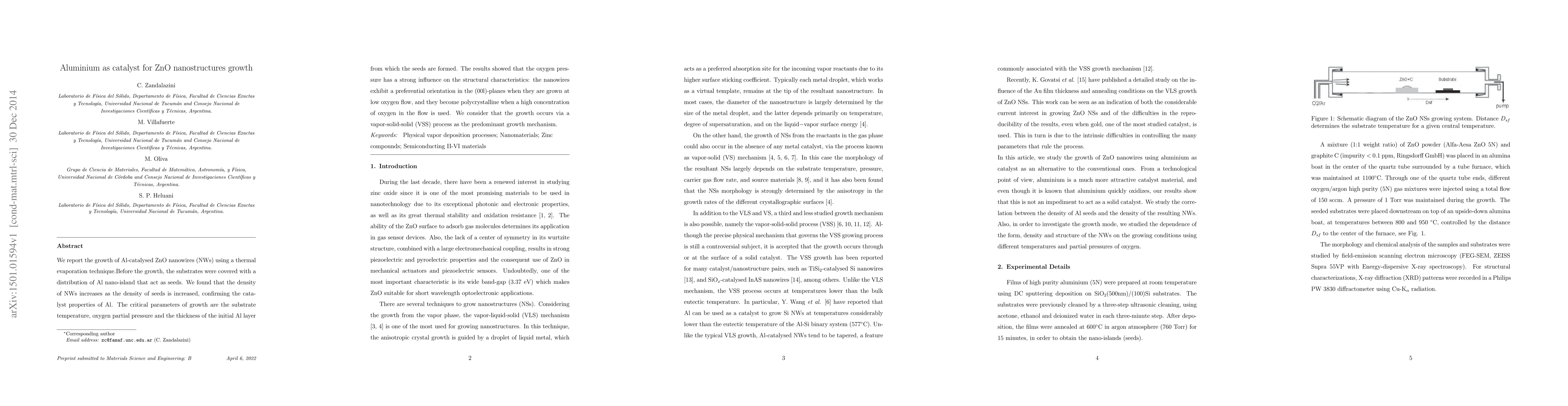 This study details the growth of Al-catalysed ZnO nanowires using thermal evaporation, where Al nano-islands serve as seeds. The density of ZnO nanowires correlates with the density of Al seeds, highlighting Al's catalytic role, with growth parameters including substrate temperature, oxygen pressure, and initial Al layer thickness significantly influencing structural characteristics.