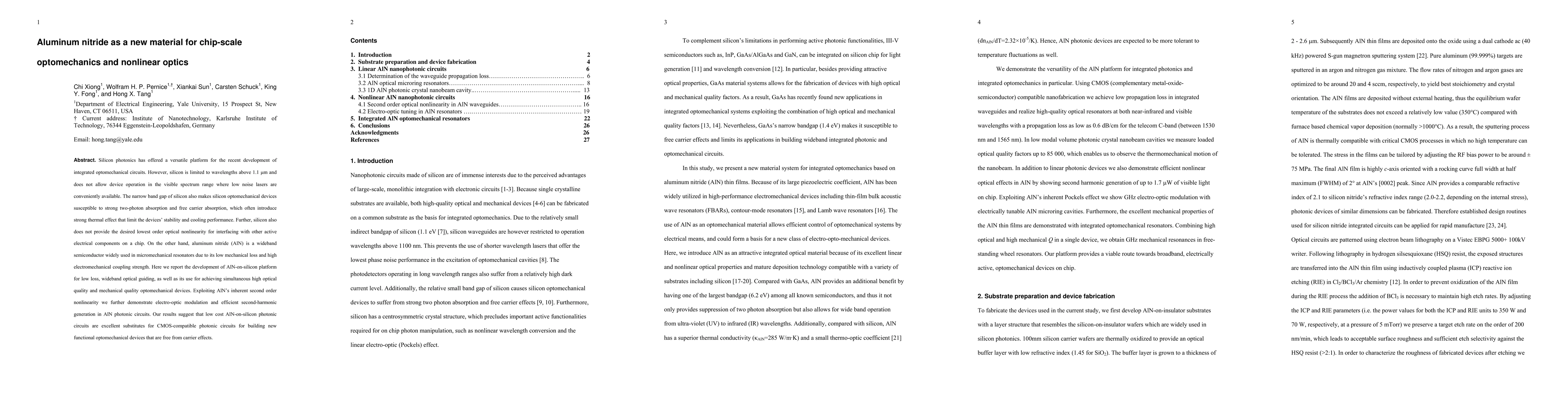 This paper explores the use of aluminum nitride (AlN) as a new material for chip-scale optomechanical circuits and nonlinear optics, demonstrating its potential to overcome the limitations of silicon photonics, including thermal effects and lack of optical nonlinearity, while achieving low loss and wideband optical guiding.