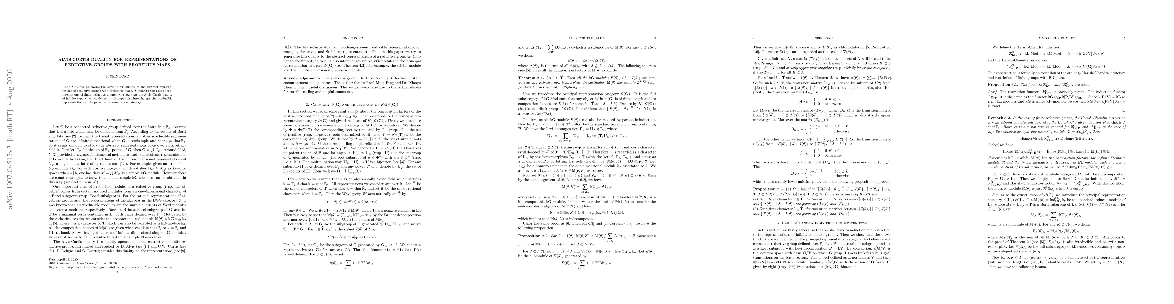 Summary: This paper generalizes Alvis-Curtis duality to abstract representations of reductive groups equipped with Frobenius maps, demonstrating that the newly defined infinite type duality interchanges irreducible representations in the principal representation category, akin to the case of finite reductive groups.