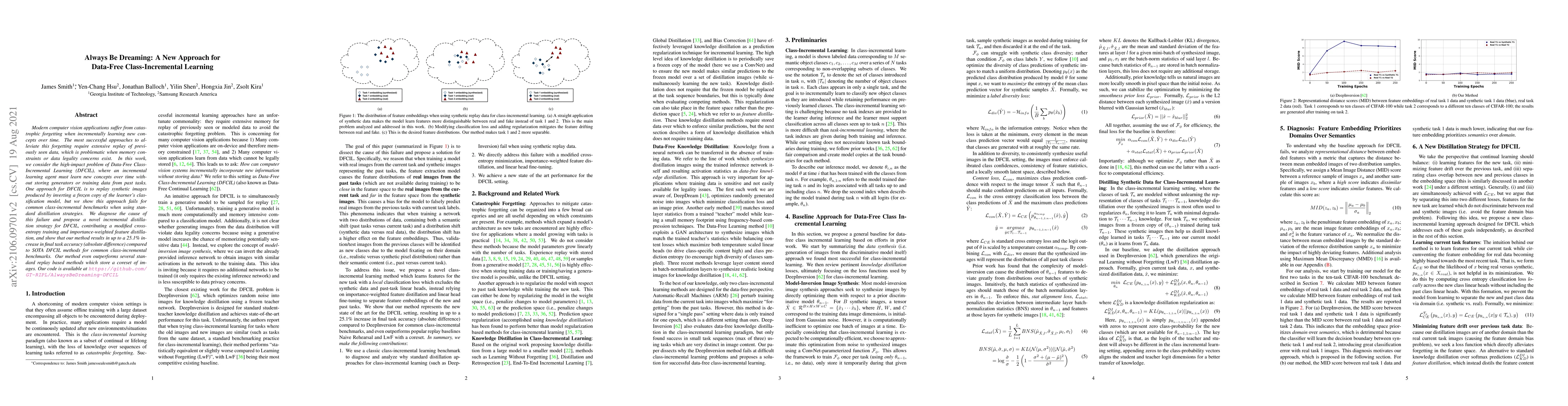 Modern computer vision applications suffer from catastrophic forgetting when incrementally learning new concepts over time. The most successful approaches to alleviate this forgetting require extensive replay of previously seen data, which is problematic when memory constraints or data legality concerns exist. In this work, we consider the high-impact problem of Data-Free Class-Incremental Learning (DFCIL), where an incremental learning agent must learn new concepts over time without storing generators or training data from past tasks. One approach for DFCIL is to replay synthetic images produced by inverting a frozen copy of the learner's classification model, but we show this approach fails for common class-incremental benchmarks when using standard distillation strategies. We diagnose the cause of this failure and propose a novel incremental distillation strategy for DFCIL, contributing a modified cross-entropy training and importance-weighted feature distillation, and show that our method results in up to a 25.1% increase in final task accuracy (absolute difference) compared to SOTA DFCIL methods for common class-incremental benchmarks. Our method even outperforms several standard replay based methods which store a coreset of images.
