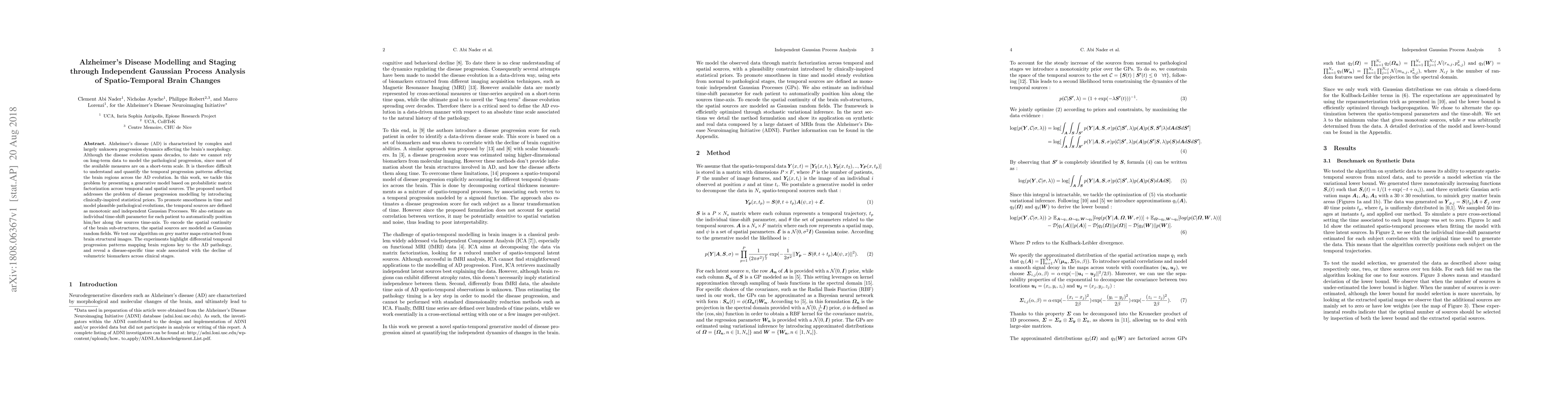 This paper proposes a generative model using independent Gaussian Processes to model the temporal progression of Alzheimer's disease by analyzing spatio-temporal brain changes. The method introduces clinically-inspired statistical priors and estimates individual time-shift parameters to position patients along the disease progression timeline.