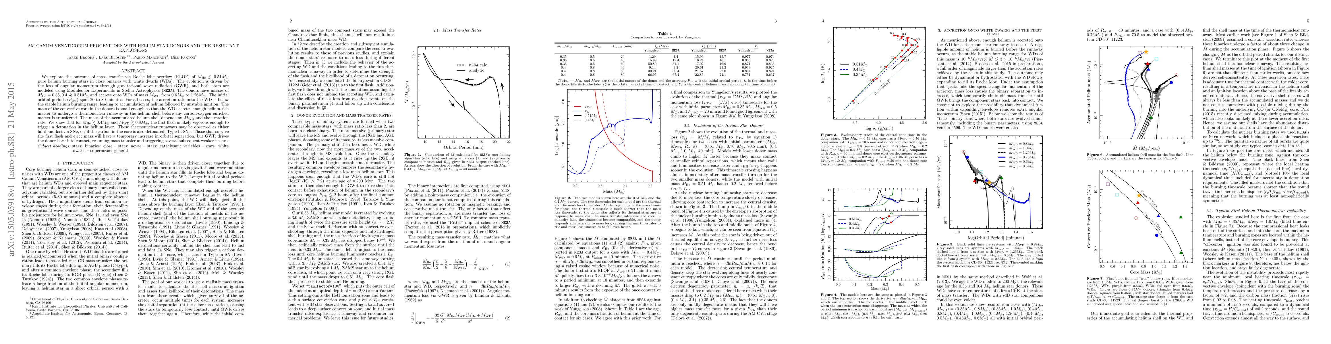 This study investigates the evolution of AM Canum Venaticorum stars through mass transfer from helium-burning stars to white dwarfs, leading to thermonuclear runaways. The simulations predict that for certain masses, the first flash can trigger a detonation, potentially resulting in faint Type Ia supernovae or Type Ia supernovae if carbon in the core is also ignited.