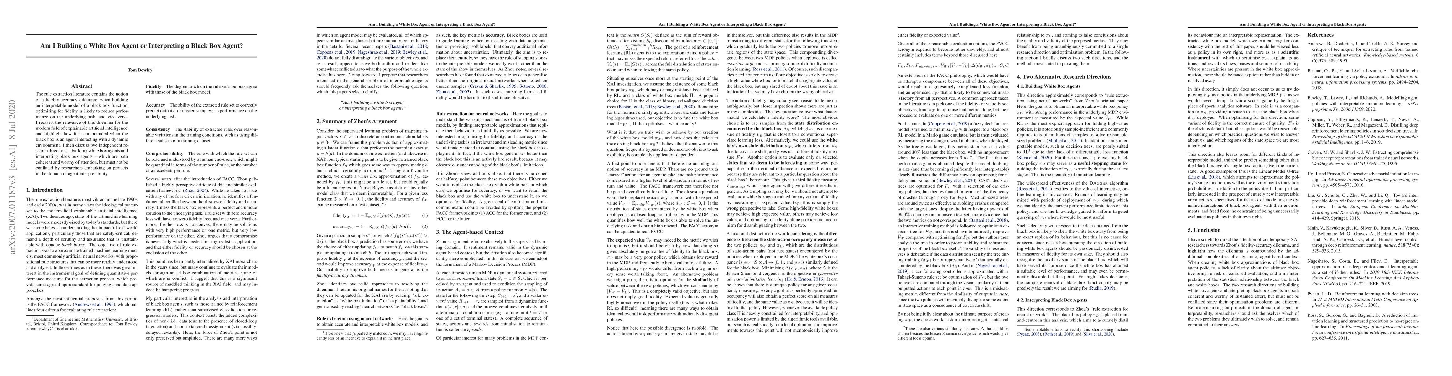 This paper explores the fidelity-accuracy dilemma in the context of explainable artificial intelligence, emphasizing the challenge of optimizing interpretability in agent models. It distinguishes between building white box agents and interpreting black box agents, stressing the need to avoid conflating these two distinct research directions.