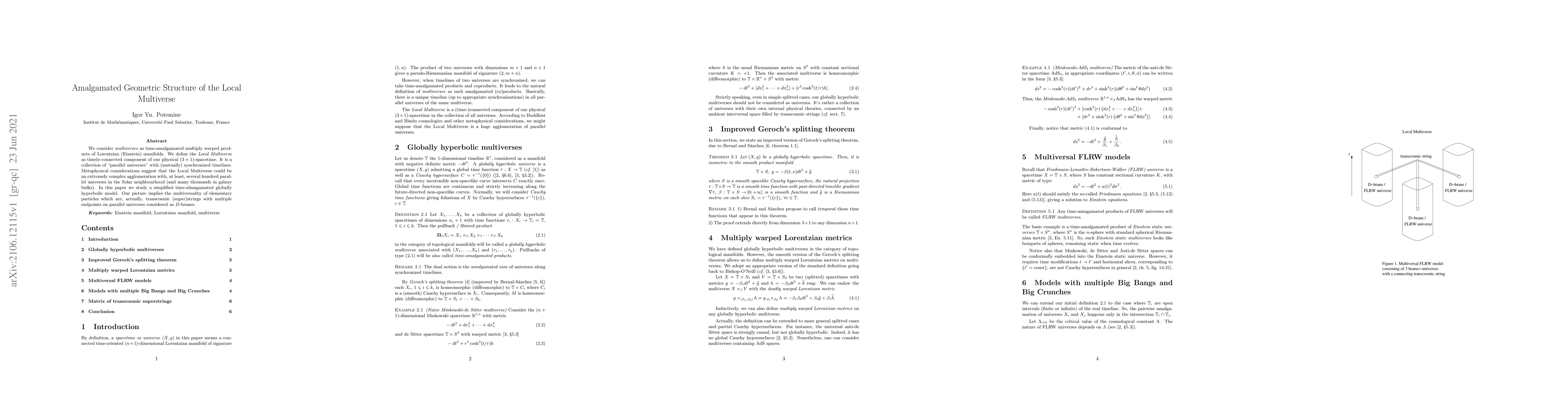 We consider multiverses as time-amalgamated multiply warped products of Lorentzian (Einstein) manifolds. We define the Local Multiverse as timely-connected component of our physical (3+1)-spacetime. It is a collection of ``parallel universes" with (mutually) synchronized timelines. Metaphysical considerations suggest that the Local Multiverse could be an extremely complex agglomeration with, at least, several hundred parallel universes in the Solar neighbourhood (and many thousands in galaxy bulks). In this paper we study a simplified time-almagamated globally hyperbolic model. Our picture implies the multiversality of elementary particles which are, actually, transcosmic (super)strings with multiple endpoints on parallel universes considered as D-branes.