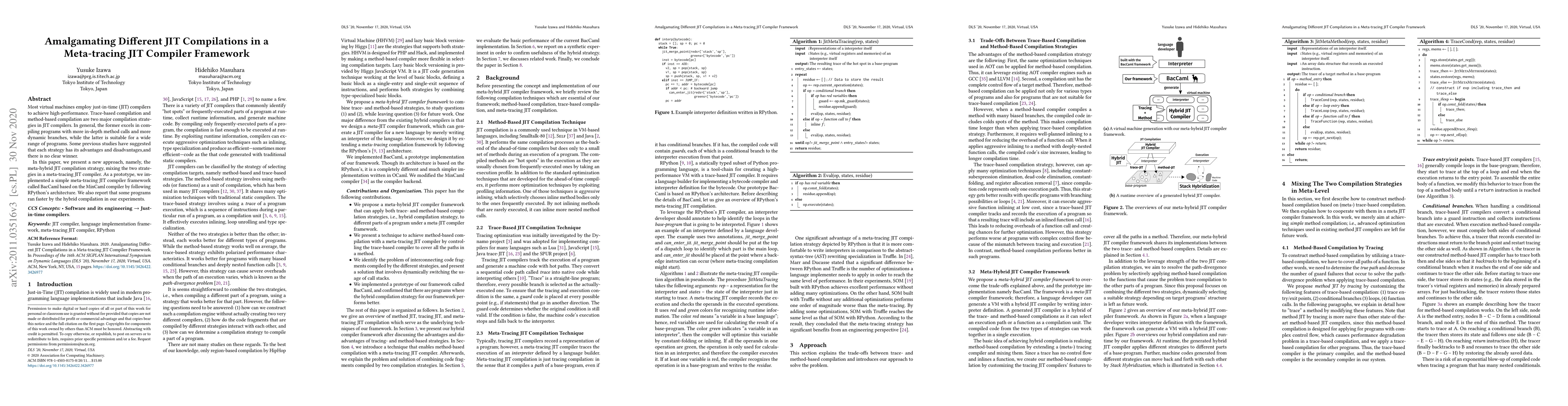 This paper proposes a meta-hybrid JIT compiler framework that amalgamates trace-based and method-based compilation strategies to optimize performance for different program parts. The BacCaml framework was implemented as a proof-of-concept, demonstrating that some programs executed faster with the hybrid approach.