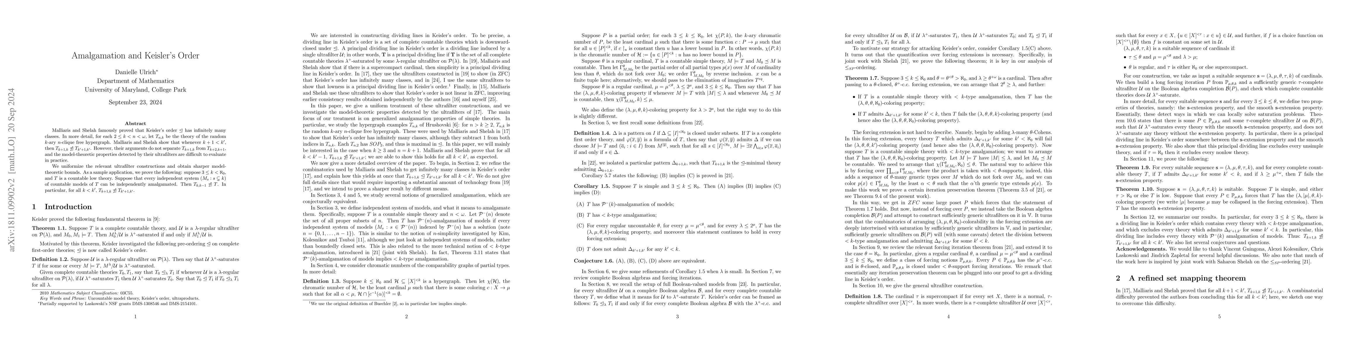 Malliaris and Shelah famously proved that Keisler's order $\trianglelefteq$ has infinitely many classes. In more detail, for each $2 \leq k < n < \omega$, let $T_{n, k}$ be the theory of the random $k$-ary $n$-clique free hypergraph. Malliaris and Shelah show that whenever $k+1 < k'$, then $T_{k+1, k} \not \trianglelefteq T_{k'+1, k'}$. However, their arguments do not separate $T_{k+1, k}$ from $T_{k+2, k+1}$, and the model-theoretic properties detected by their ultrafilters are difficult to evaluate in practice. We uniformize the relevant ultrafilter constructions and obtain sharper model-theoretic bounds. As a sample application, we prove the following: suppose $3 \leq k < \aleph_0$, and $T$ is a countable low theory. Suppose that every independent system $(M_s: s \subsetneq k)$ of countable models of $T$ can be independently amalgamated. Then $T_{k, k-1} \not \trianglelefteq T$. In particular, for all $k < k'$, $T_{k+1, k} \not \trianglelefteq T_{k'+1, k'}$.