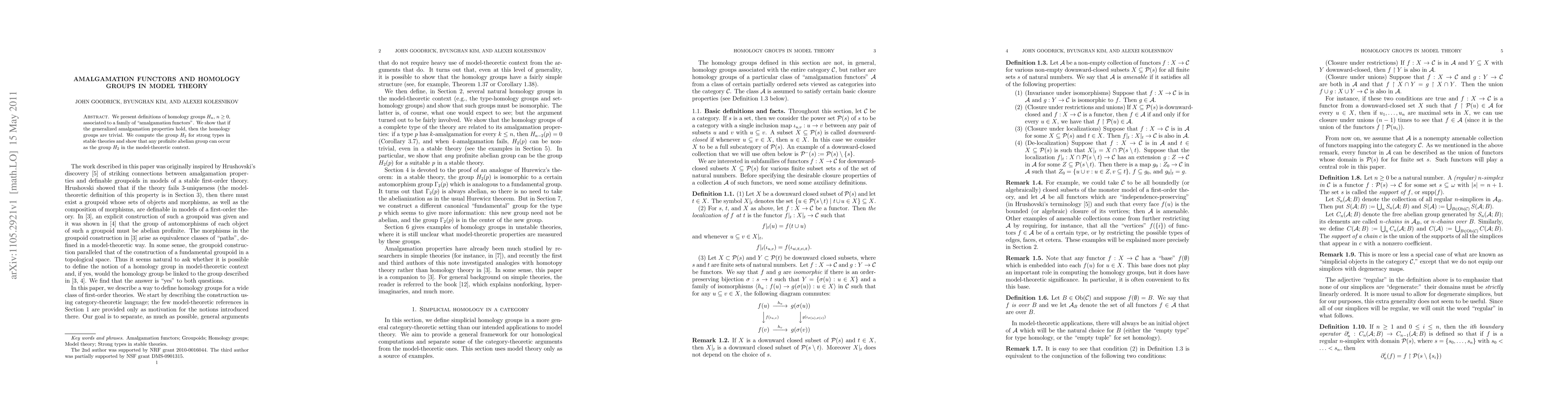 This paper defines homology groups linked to amalgamation functors and demonstrates that trivial homology groups result from generalized amalgamation properties. It further computes H_2 for strong types in stable theories, concluding that the resulting groups are profinite abelian.