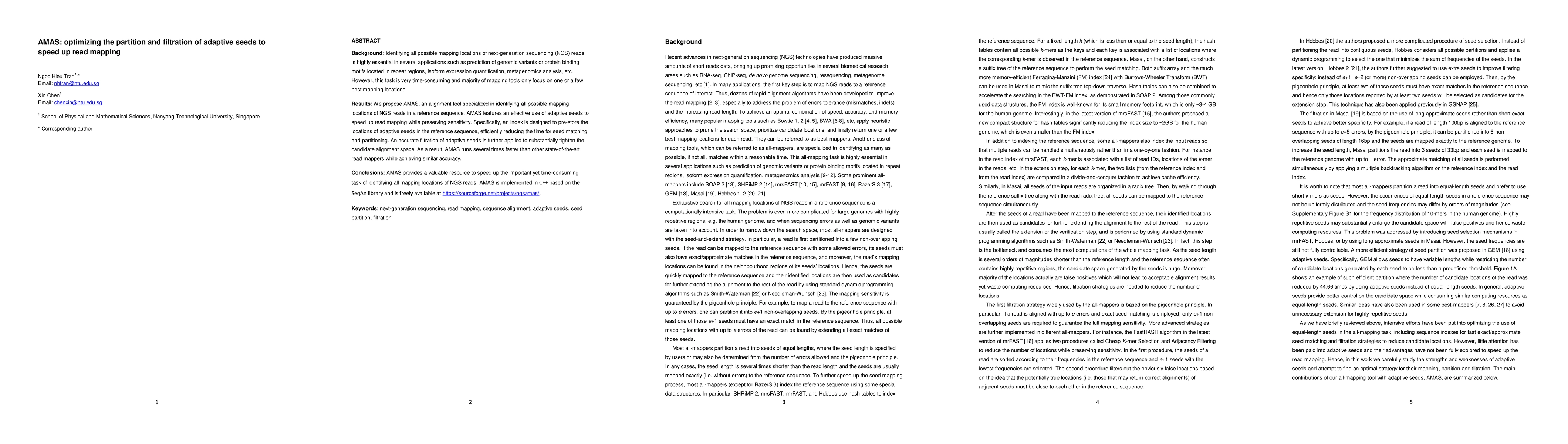 AMAS is an advanced alignment tool designed to identify all possible mapping locations of next-generation sequencing reads efficiently. It utilizes adaptive seeds and an optimized index to significantly speed up the read mapping process while maintaining high sensitivity and accuracy.