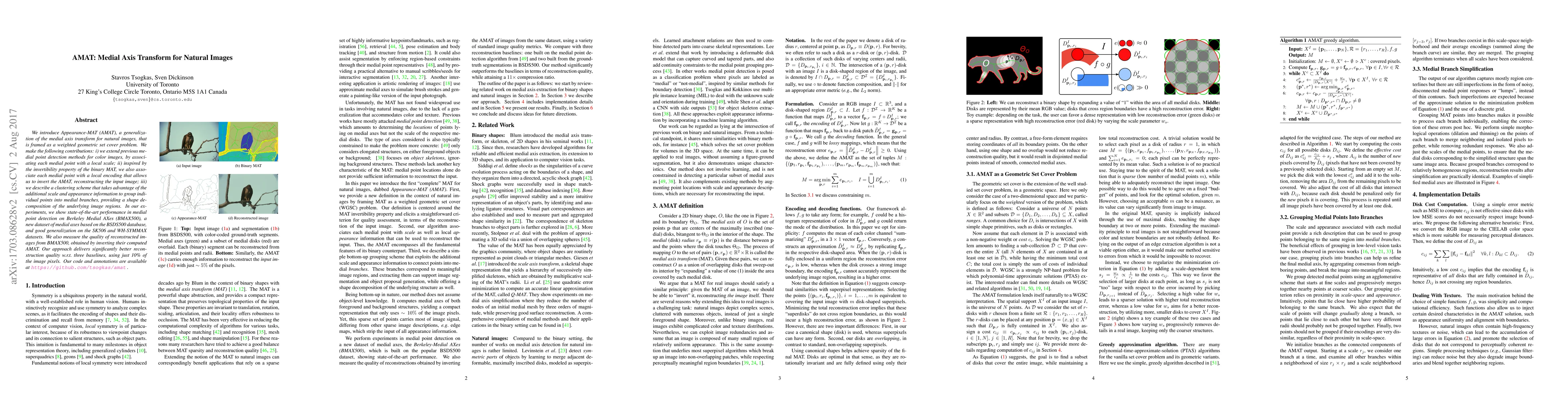 Researchers introduce AMAT, a method for detecting medial axes in natural images, achieving state-of-the-art performance on new datasets and significantly improving image reconstruction quality with minimal pixel usage.