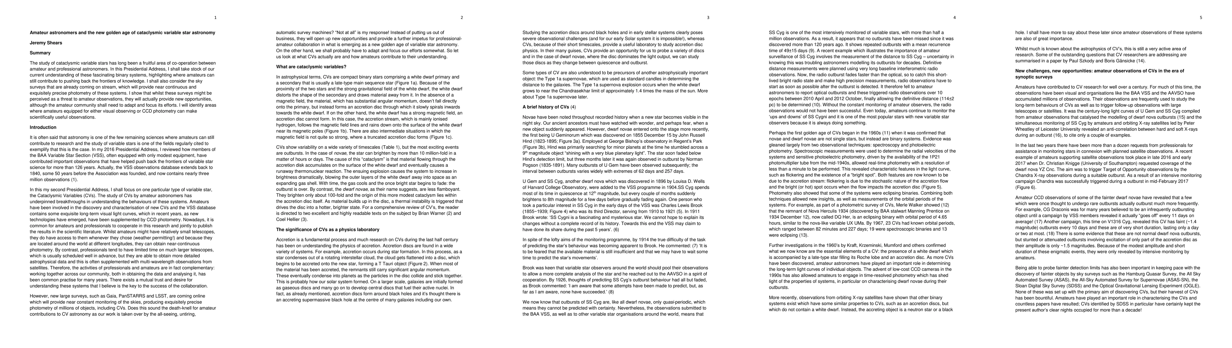 This paper reviews the collaborative efforts between amateur and professional astronomers in studying cataclysmic variable stars, emphasizing how new sky surveys will create new opportunities for amateurs to contribute to scientific advancements, provided they adapt their observational techniques and focus on specific areas of interest.
