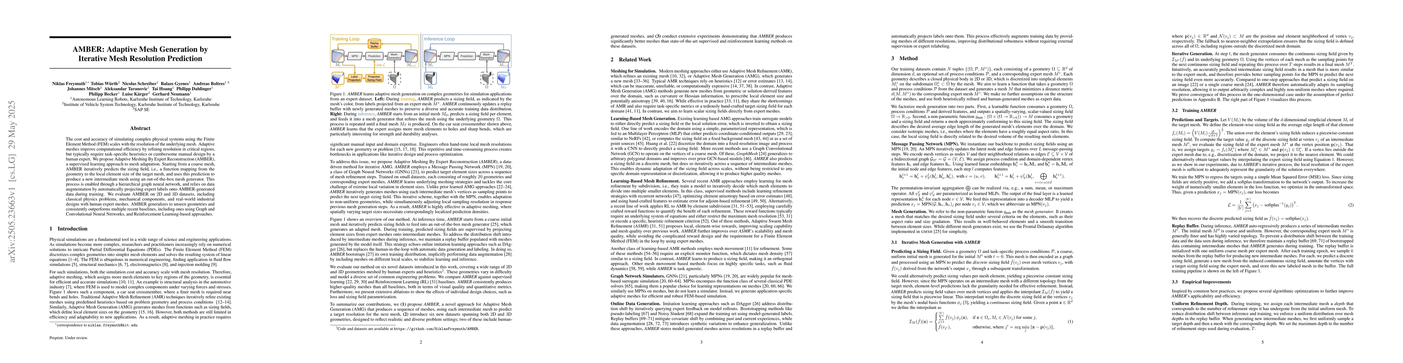Researchers propose AMBER, a supervised learning approach to adaptive mesh generation that improves computational efficiency in simulations using the Finite Element Method. It outperforms multiple recent baselines and generalizes to unseen geometries.