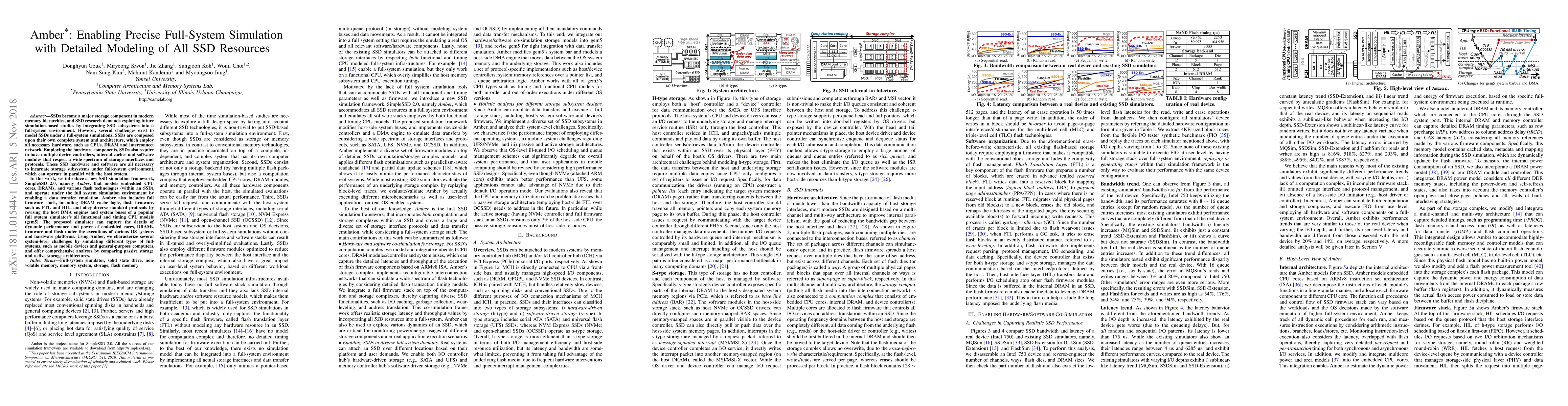 Amber is a new SSD simulation framework that precisely models all SSD resources, including embedded CPU cores, DRAMs, and flash technologies, within a full-system simulation environment. This framework enables detailed performance and power analysis of SSDs under various OS systems and hardware platforms.