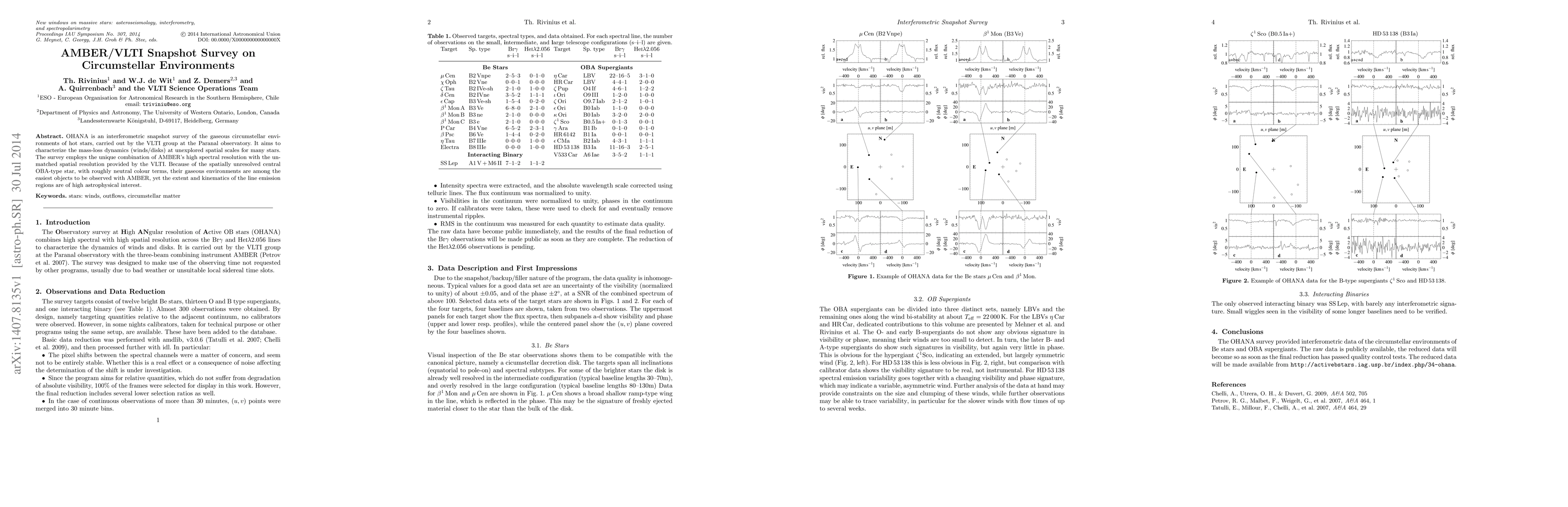 The OHANA survey, conducted by the VLTI group using AMBER at the Paranal observatory, aims to characterize the mass-loss dynamics of hot stars' circumstellar environments at previously unexplored spatial scales. The study leverages AMBER's high spectral resolution and VLTI's spatial resolution to investigate the extent and kinematics of gaseous emission regions around OBA-type stars.