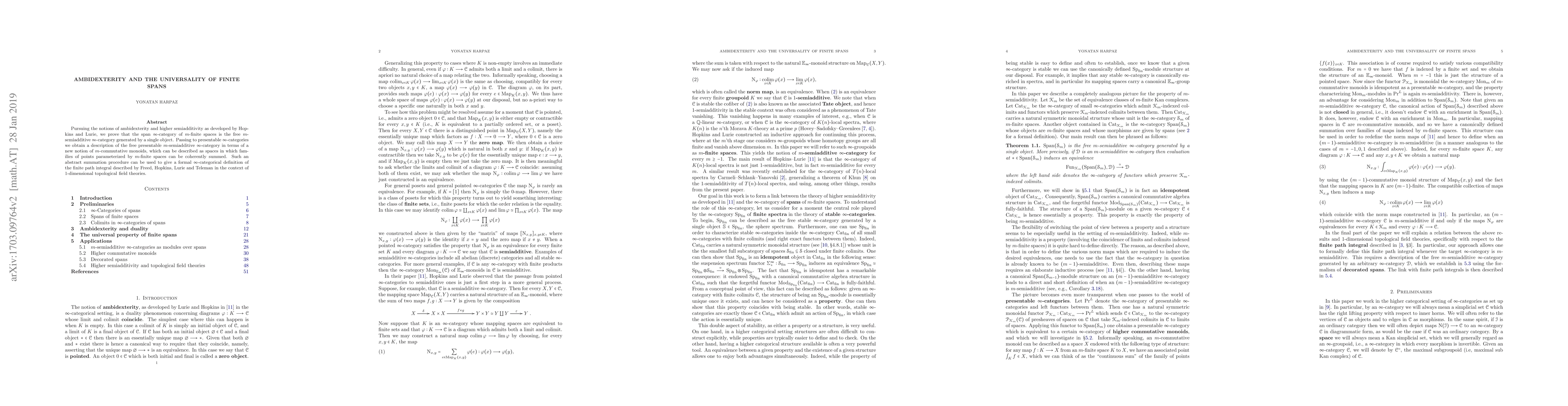 Pursuing the notions of ambidexterity and higher semiadditivity as developed by Hopkins and Lurie, we prove that the span $\infty$-category of $m$-finite spaces is the free $m$-semiadditive $\infty$-category generated by a single object. Passing to presentable $\infty$-categories we obtain a description of the free presentable $m$-semiadditive $\infty$-category in terms of a new notion of $m$-commutative monoids, which can be described as spaces in which families of points parameterized by $m$-finite spaces can be coherently summed. Such an abstract summation procedure can be used to give a formal $\infty$-categorical definition of the finite path integral described by Freed, Hopkins, Lurie and Teleman in the context of 1-dimensional topological field theories.