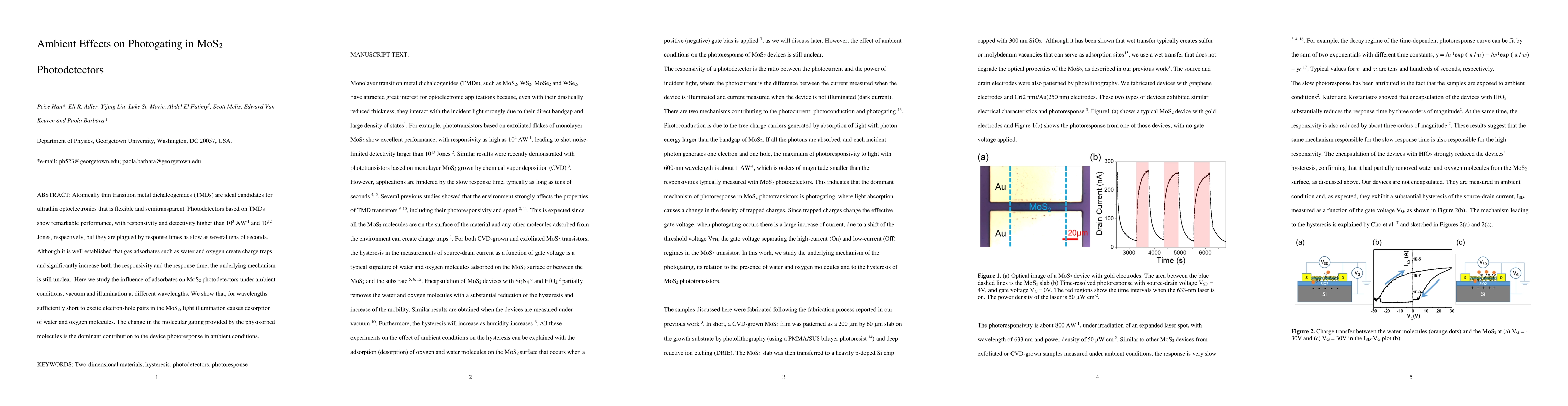 This study investigates how ambient gas adsorbates affect the photogating mechanism in MoS2 photodetectors, finding that light illumination can desorb water and oxygen, thus altering the physisorbed molecular gating and influencing the device's photoresponse. The research reveals that under ambient conditions, molecular gating is a significant factor in the photodetector's performance.