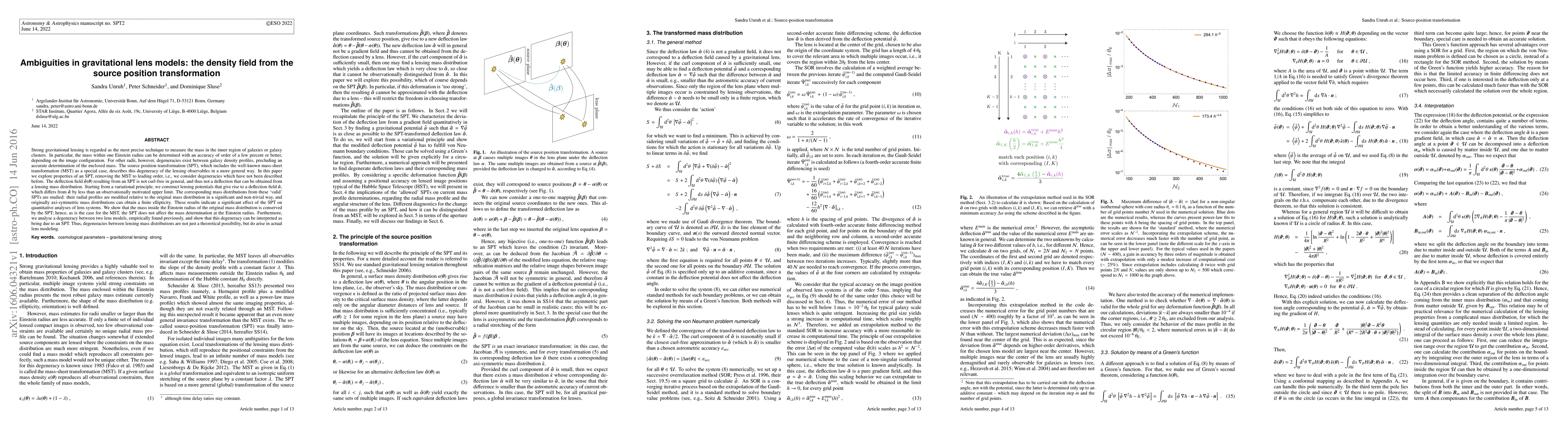 This paper investigates ambiguities in gravitational lens models, particularly focusing on the source position transformation (SPT) and its implications for mass distribution determination. It reveals that SPTs can significantly alter mass distribution profiles and introduce non-trivial ellipticities, affecting quantitative analyses of lens systems, while preserving mass within the Einstein radius.