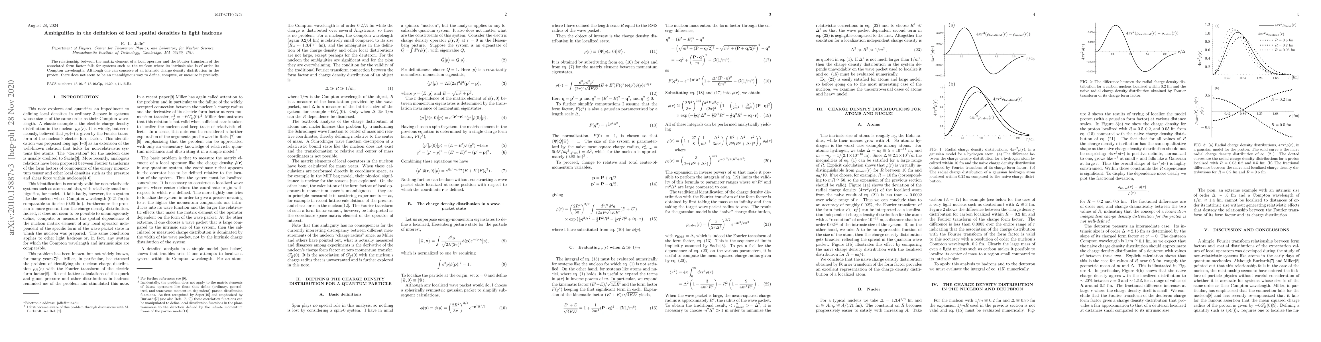 The relationship between the matrix element of a local operator and the Fourier transform of the associated form factor fails for systems such as the nucleon where its intrinsic size is of order its Compton wavelength. Although one can conceive of an intrinsic charge density distribution in the proton, there does not seem to be an unambiguous way to define, compute, or measure it precisely.