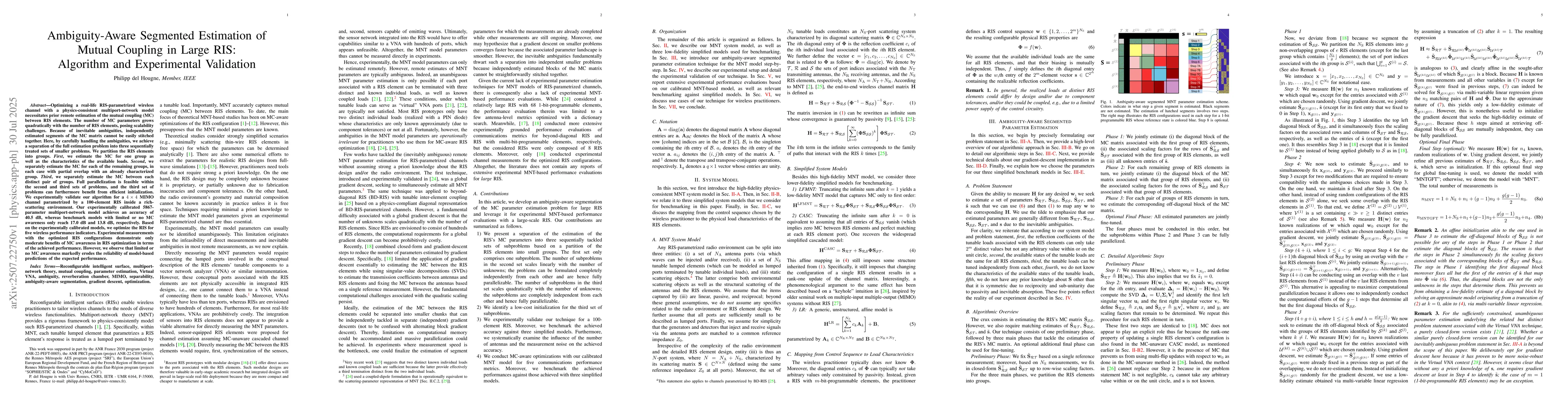Optimizing a real-life RIS-parametrized wireless channel with a physics-consistent multiport-network model necessitates prior remote estimation of the mutual coupling (MC) between RIS elements. The number of MC parameters grows quadratically with the number of RIS elements, posing scalability challenges. Because of inevitable ambiguities, independently estimated segments of the MC matrix cannot be easily stitched together. Here, by carefully handling the ambiguities, we achieve a separation of the full estimation problem into three sequentially treated sets of smaller problems. We partition the RIS elements into groups. First, we estimate the MC for one group as well as the characteristics of the available loads. Second, we separately estimate the MC for each of the remaining groups, in each case with partial overlap with an already characterized group. Third, we separately estimate the MC between each distinct pair of groups. Full parallelization is feasible within the second and third sets of problems, and the third set of problems can furthermore benefit from efficient initialization. We experimentally validate our algorithm for a 4x4 MIMO channel parametrized by a 100-element RIS inside a rich-scattering environment. Our experimentally calibrated 5867-parameter multiport-network model achieves an accuracy of 40.5 dB, whereas benchmark models with limited or no MC awareness only reach 17.0 dB and 13.8 dB, respectively. Based on the experimentally calibrated models, we optimize the RIS for five wireless performance indicators. Experimental measurements with the optimized RIS configurations demonstrate only moderate benefits of MC awareness in RIS optimization in terms of the achieved performance. However, we observe that limited or no MC awareness markedly erodes the reliability of model-based predictions of the expected performance.