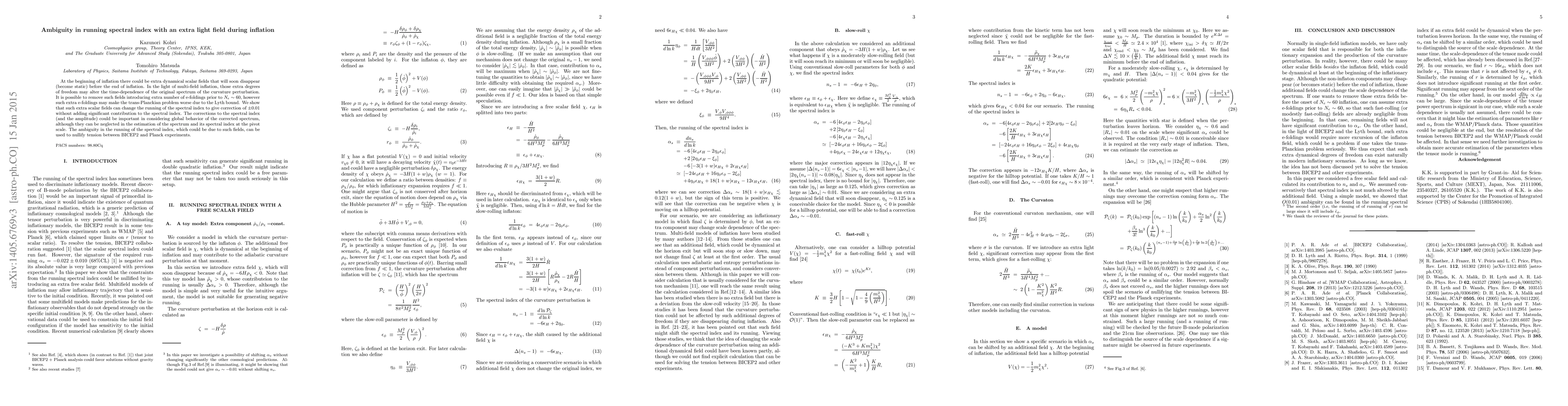 At the beginning of inflation there could be extra dynamical scalar fields that will soon disappear (become static) before the end of inflation. In the light of multi-field inflation, those extra degrees of freedom may alter the time-dependence of the original spectrum of the curvature perturbation. It is possible to remove such fields introducing extra number of e-foldings prior to $N_e\sim 60$, however such extra e-foldings may make the trans-Planckian problem worse due to the Lyth bound. We show that such extra scalar fields can change the running of the spectral index to give correction of $\pm 0.01$ without adding significant contribution to the spectral index. The corrections to the spectral index (and the amplitude) could be important in considering global behavior of the corrected spectrum, although they can be neglected in the estimation of the spectrum and its spectral index at the pivot scale. The ambiguity in the running of the spectral index, which could be due to such fields, can be used to nullify tension between BICEP2 and Planck experiments.