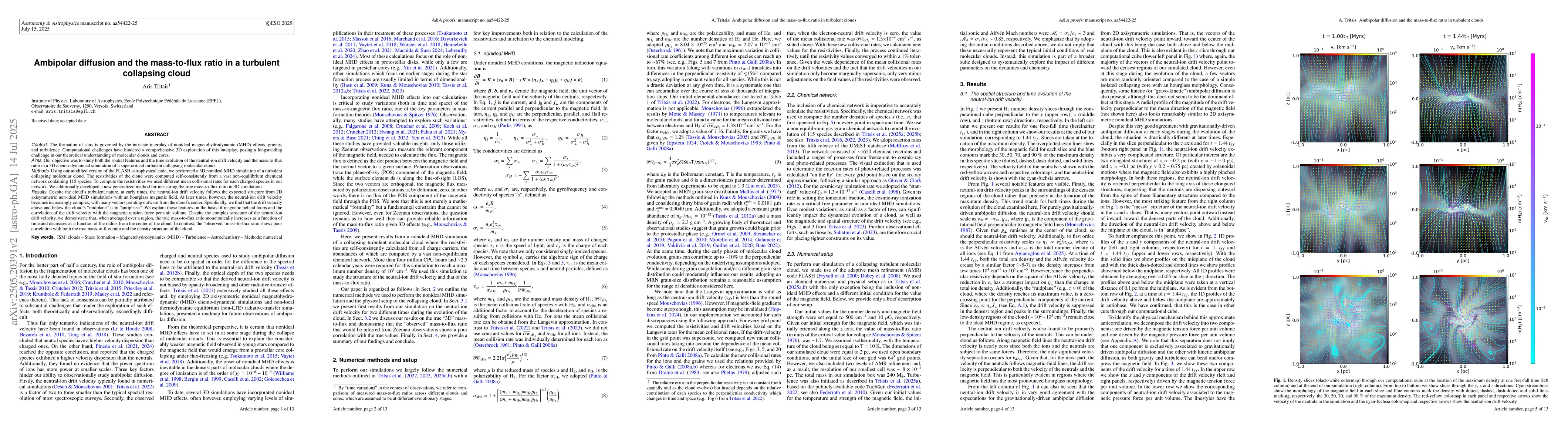 Development of a new method for measuring the true mass-to-flux ratio in 3D simulations and analysis of neutral-ion drift velocity in a turbulent collapsing cloud under nonideal MHD conditions.